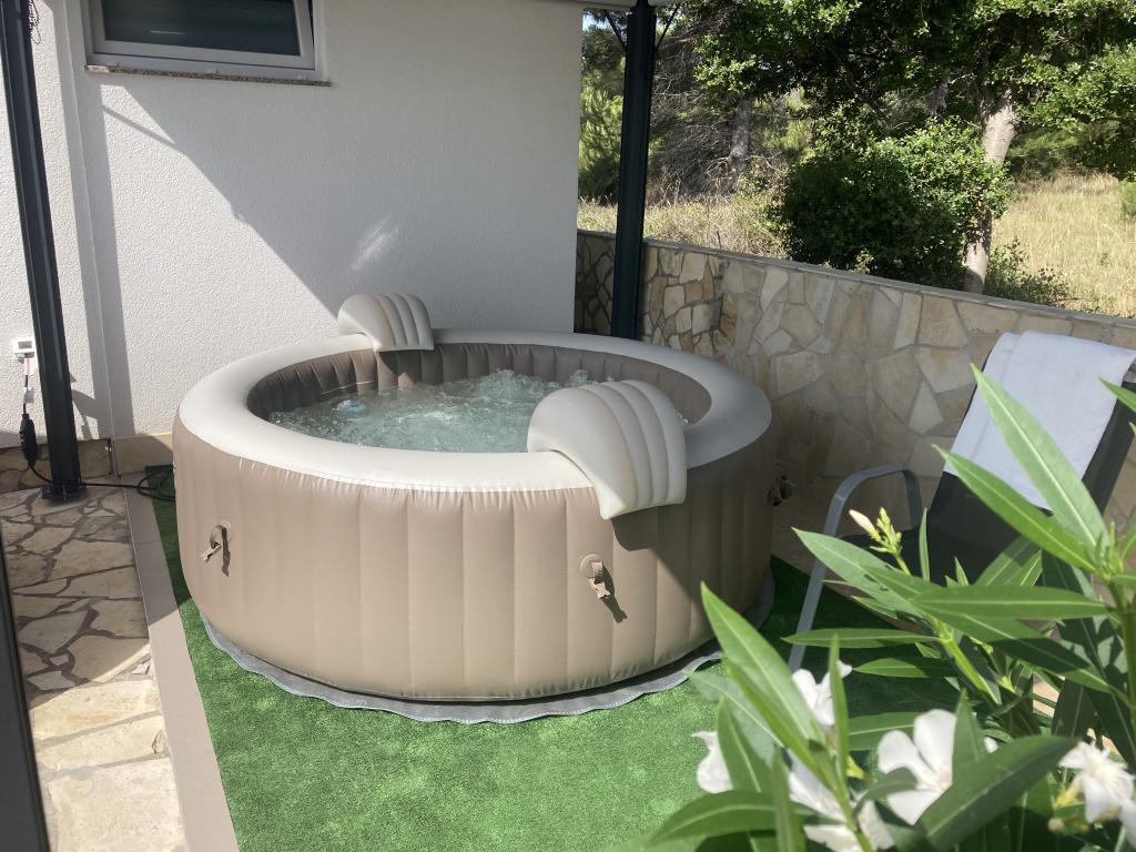 Turistična taksa je vključena v ceno. Dokument o potrditvi rezervacije ob rezervacijiVsakega gosta ob prihodu čakajo pijača dobrodošlice, kava in okusni prigrizki. Gostom so na voljo električni žari (2) ter vrtni kamin (žar) na drva in oglje. Poleg tega so na terasah gostom na voljo ležalniki za sončenje in počitek ter senčniki, na dvorišču na terasi pa je tudi hidromasažni whirlpool jacuzzi. Posteljnina in brisače so vključene v ceno.