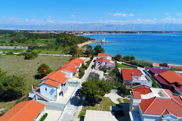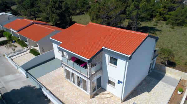 Apartmaji "Nella" se nahajajo na južnem delu otoka Vir, v naselju "Kozjak", v bližini zgodovinske trdnjave "Kaštelina", le 50m od morja. Ponujamo tri apartmaje, dva sta v prvem nadstropju in enega v pritličju. Vsak apartma ima ločen vhod in svojo teraso s tendo in sedežno garnituro, kar gostom omogoča prijetno bivanje in uživanje na prostem ves dan. Za naše goste je v ponudbi tudi whirlpool jacuzzi! Privoščite si oddih, kakršnega si želite: po sprehodu ali kolesarjenju uživajte in se sprostite v hidromasažnem jacuzziju! Apartmaji so prenovljeni, moderni in popolnoma opremljeni (wi-fi, klima, SAT TV, posteljnina itd.). Nahajajo se v mirni ulici, v neposredni bližini pa je restavracija in trgovina. Gostom je zagotovljeno brezplačno parkiranje na dvorišču. Plaža "Kozjak" je oddaljena 50m, je urejena, delno betonska in delno peščena, idealna za otroke; in vzdolž naselja "Kozjak" (rt otoka) so urejene sprehajalne poti in plaže. Dragi gostje, dobrodošli!