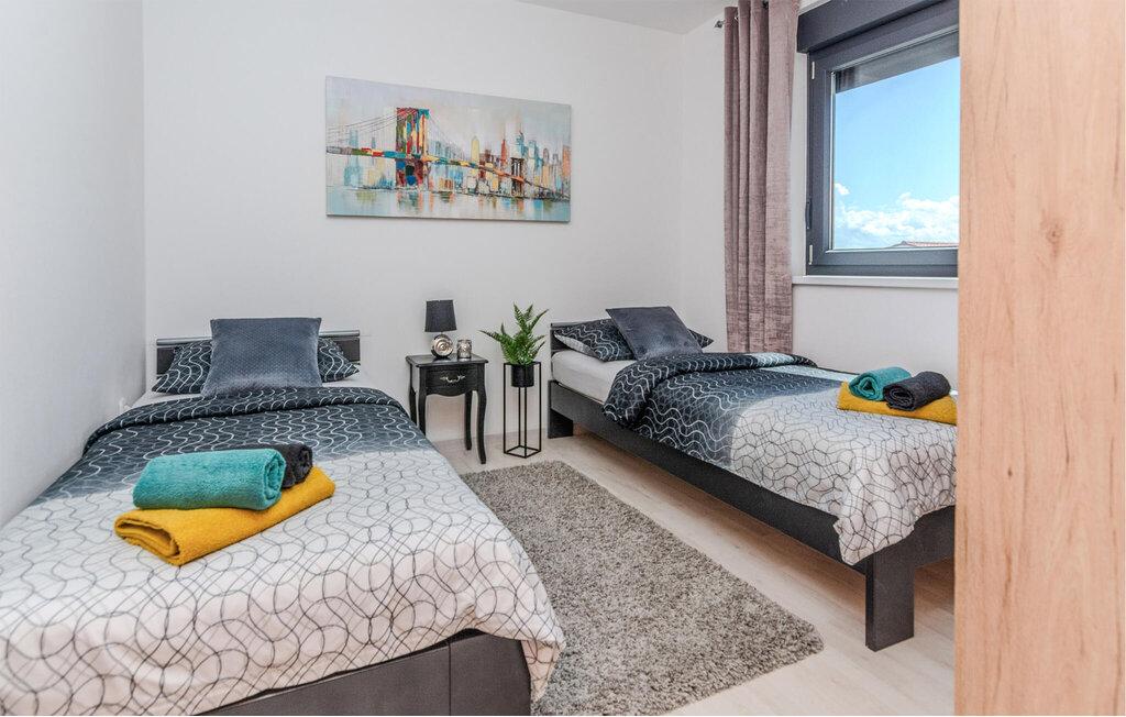 Stanovanje je zelo urejeno, moderno in čisto. Imata celo dve terasi, tako da je vedno nekje senca. Lastniki zelo prijazni, vedno na voljo, ob prihodu so nas pričakali z okusno dobrodošlico, še toplimi domačimi rogljički. Morje je oddaljeno minuto hoje, vendar je na plaži tudi pomol, ki je odličen za mlade, da skočijo v vodo. Priporočam! Tjaša