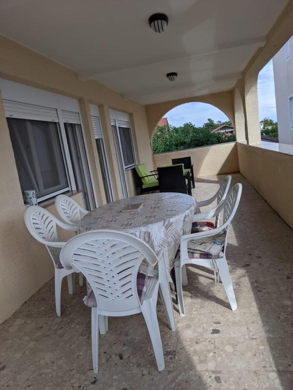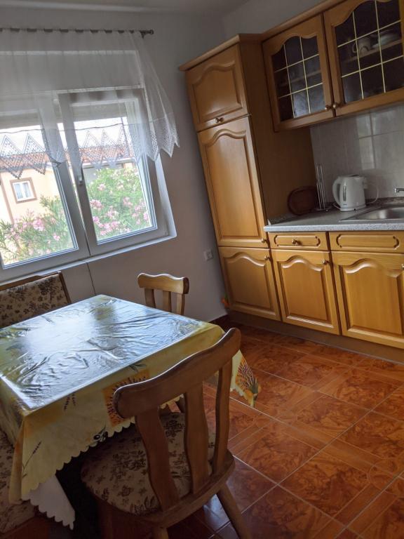 Na južni strani otoka se oddaja hiša z 2 velikima apartmajema. Vsak apartma je namenjen za 4 - 7 oseb. Vsak apartma ima 3 spalnice, dnevno sobo, kuhinjo, kopalnico z 2 tuš kabinama, 2 umivalnika, WC + 1 ločen WC. Velika pokrita terasa ima pogled na južno stran. Apartma v drugem nadstropju ima pogled na morje. Apartmaji so popolnoma opremljeni. Na velikem dvorišču je zunanji tuš, žar in veliko parkirišče.