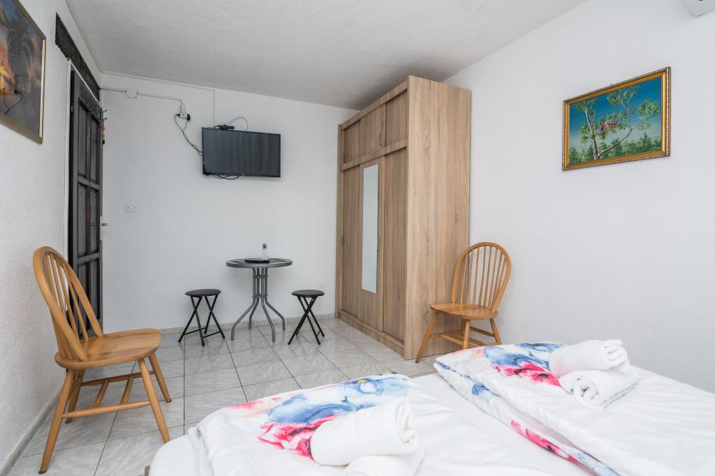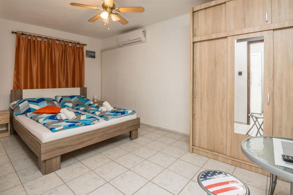 Popolnoma opremljeni apartmaji v mirni ulici, ki se nahaja 60 metrov od plaže. Restavracije, kavarne in trgovine so oddaljene 5 min hoje. Vsaka soba je klimatizirana. Apartmaji se nahajajo v pritličju.