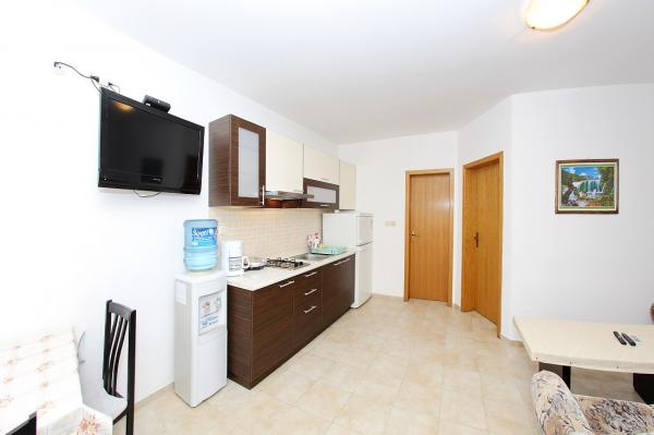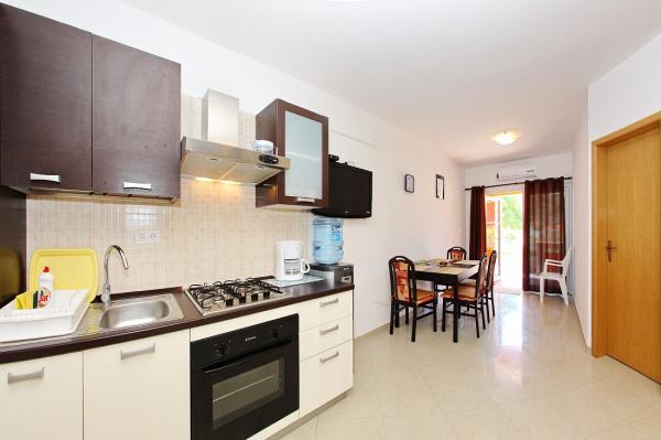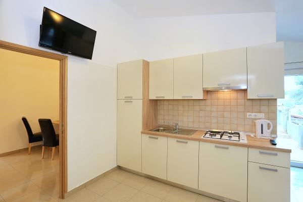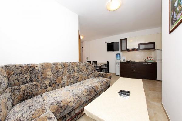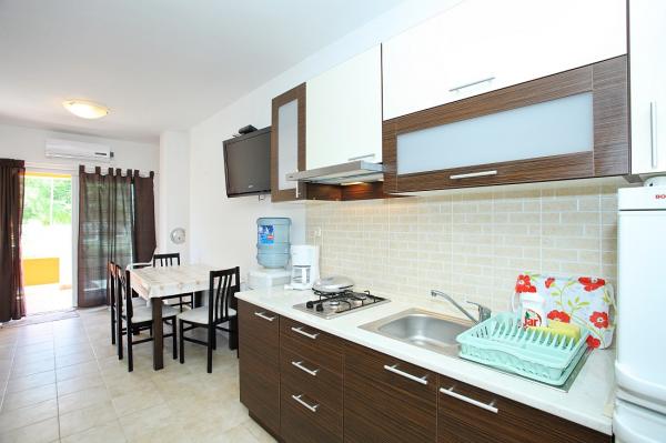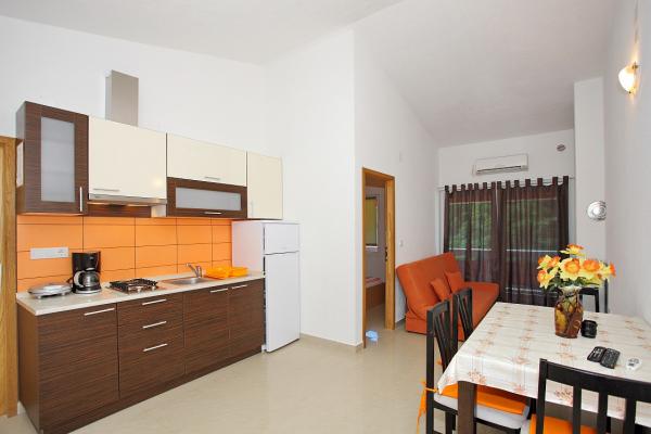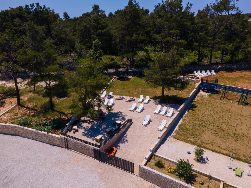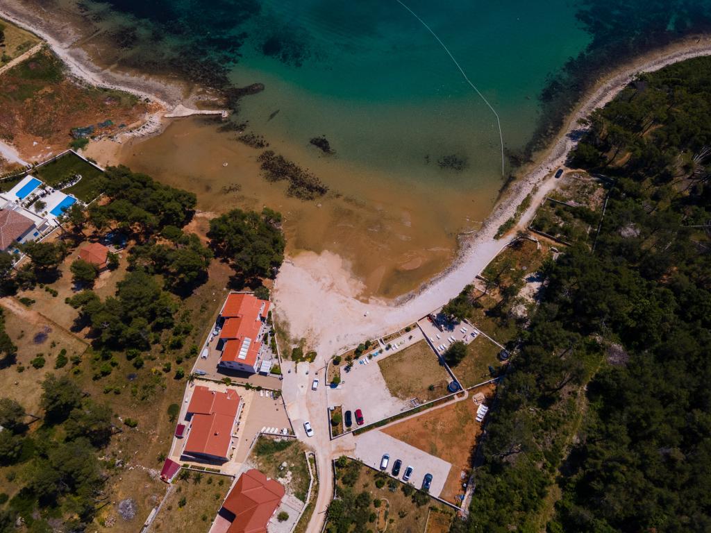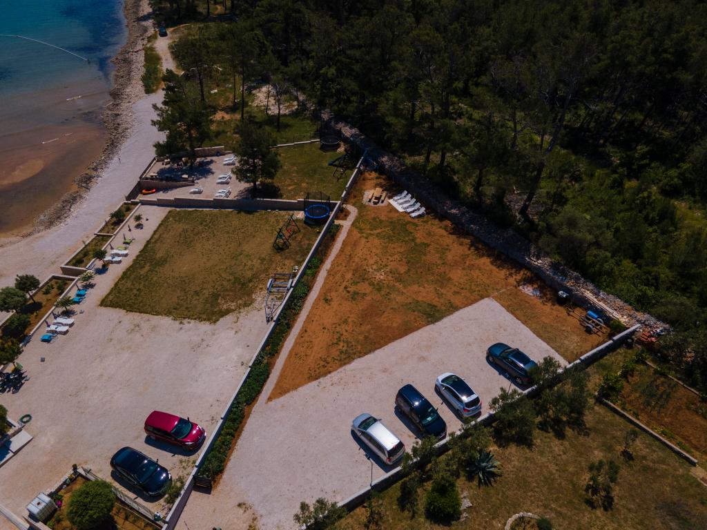 Apartmaji se nahajajo v mirnem zalivu Sapavac, ob sami plaži, obdani z borovim gozdom. Idealno za družinske počitnice, brez hrupa. Apartmaji so novi, moderno urejeni, z vso potrebno opremo in so klimatizirani. Vsak apartma ima svojo teraso s pogledom na morje. Na dvorišču je žar z žarom in prostor za druženje, ki je gostom na voljo brez doplačila. Plaža je prodnata, morje pa ima zelo nežen pesek, idealno za majhne otroke.