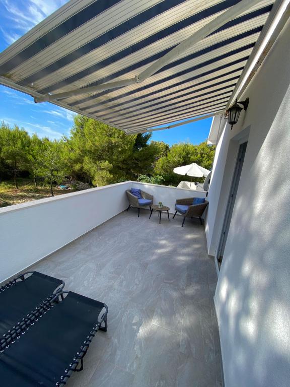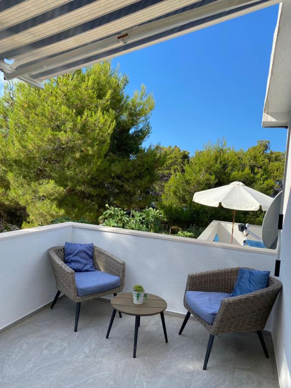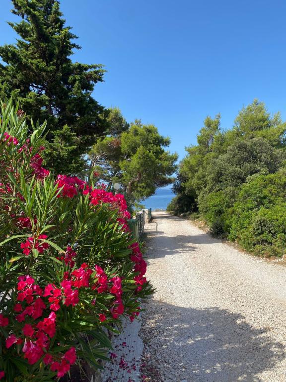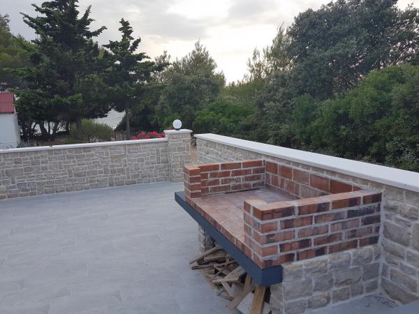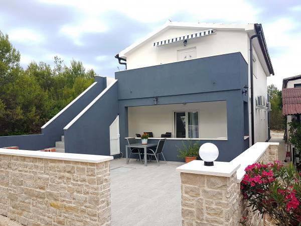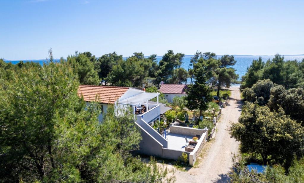 Hiša se nahaja v borovem gozdu 35 m od morja, na koncu Vira, Mirna ulica, idealna za dopust, saj smo daleč od hrupa mestnih plaž, hiša ima nadstropje, kjer sta dve spalnici z velika dnevna soba, WC, tuš in pralnica kuhinja je opremljena z vsem potrebnim, mikrovalovna pečica, aparat za kavo, kuhalnik vode in posoda za kuhanje, dve terasi, v pritličju hiše dva apartmaja, vsak opremljen s kuhinjo , WC in tuš, ena spalnica in dnevna soba, stanovanje ima lastno teraso, ter dop terasa z žarom, hiša lahko sprejme od 10 do 13 oseb, . Z veseljem vas bomo gostili. Na voljo otroška posteljica.