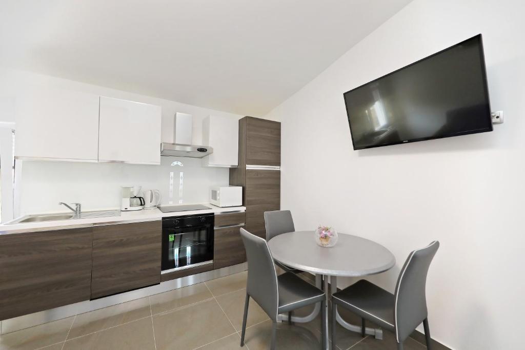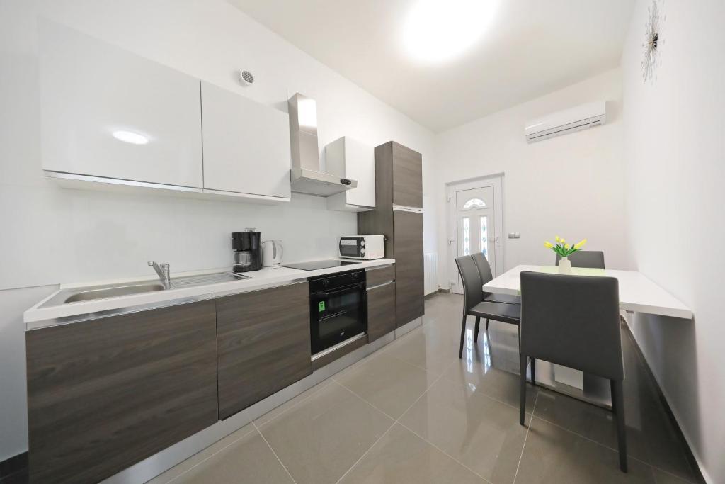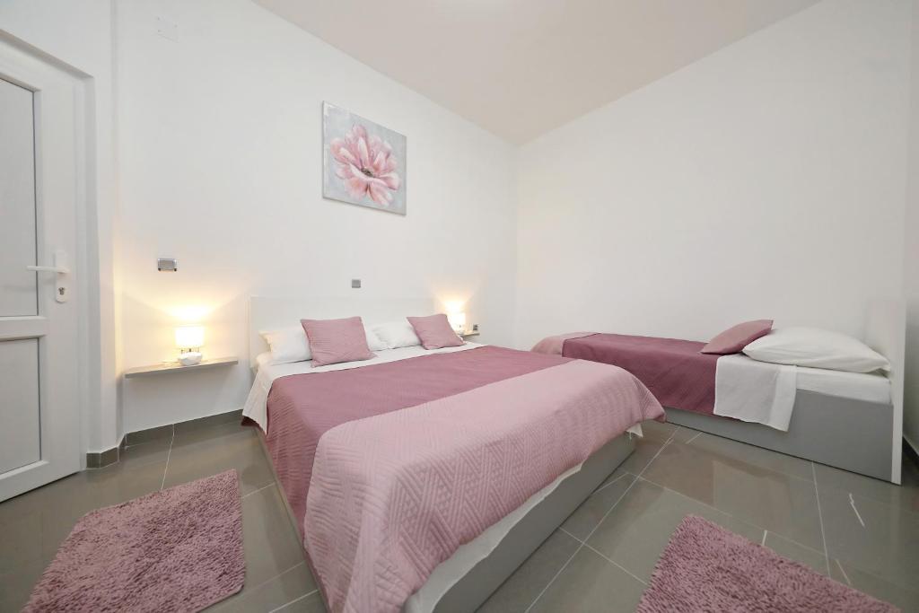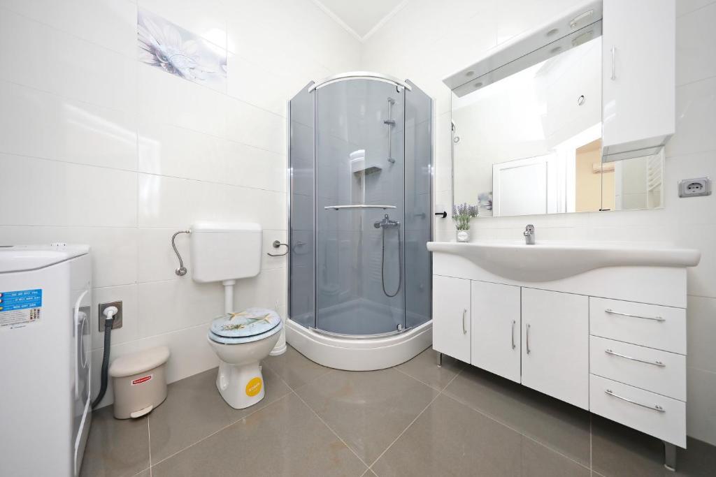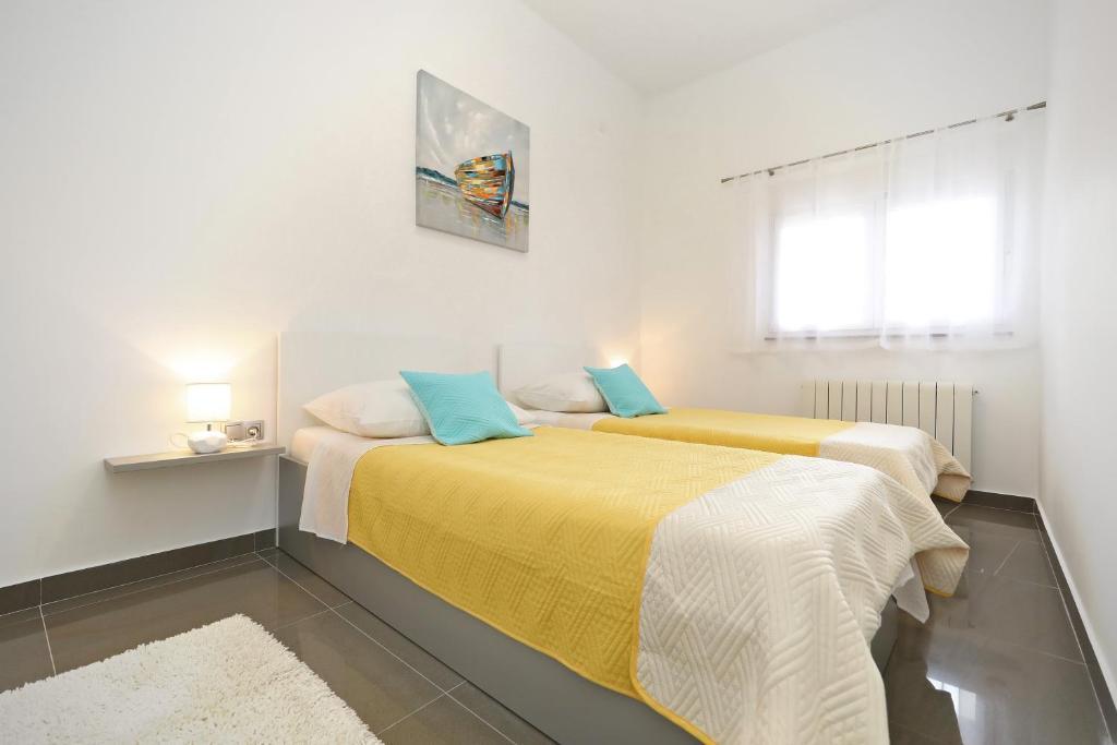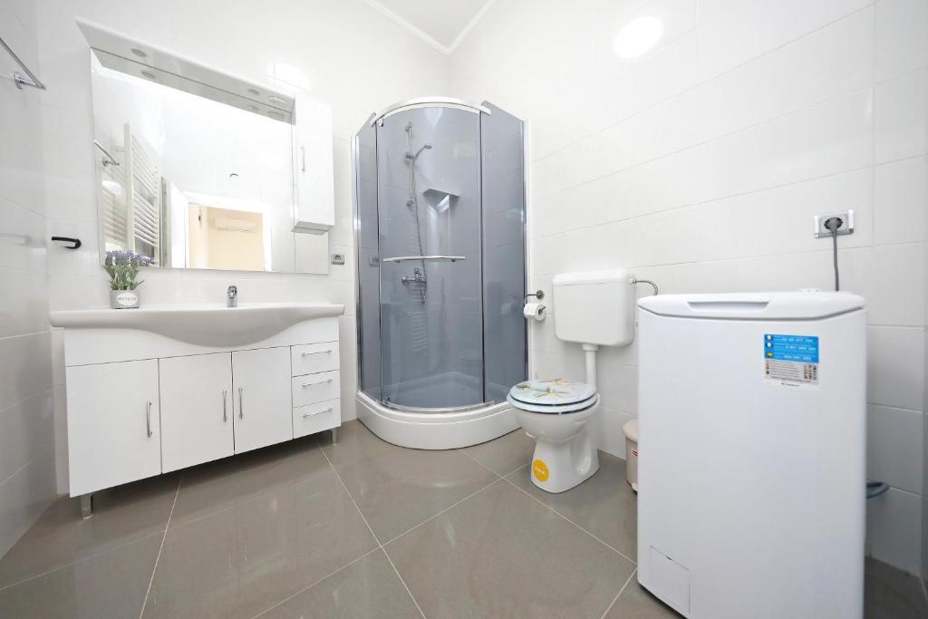 Apartma za 6 oseb. Pred prihodom odličen kontakt z lastnikom. Lep pozdrav Andel. Čudovito bivanje. Lastniki so bili zelo prijazni in ustrežljivi. Samo stanovanje je čisto, prostorno, opremljeno s pomivalnim strojem, pralnim strojem, aparatom za kavo, toasterjem, mikrovalovno pečico, klimo in vso potrebno posodo. dodatno tablete za pomivalni stroj, brisače, ležalniki. Okusen paradižnik in grozdje na vrtu za goste. Zelo blizu plaže Jadro. V bližini trgovine, pekarna in ambulanta. Iskreno priporočam.