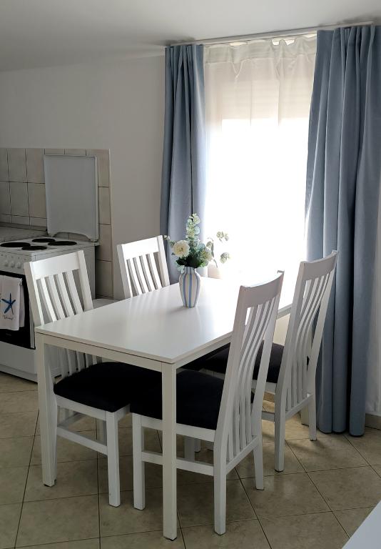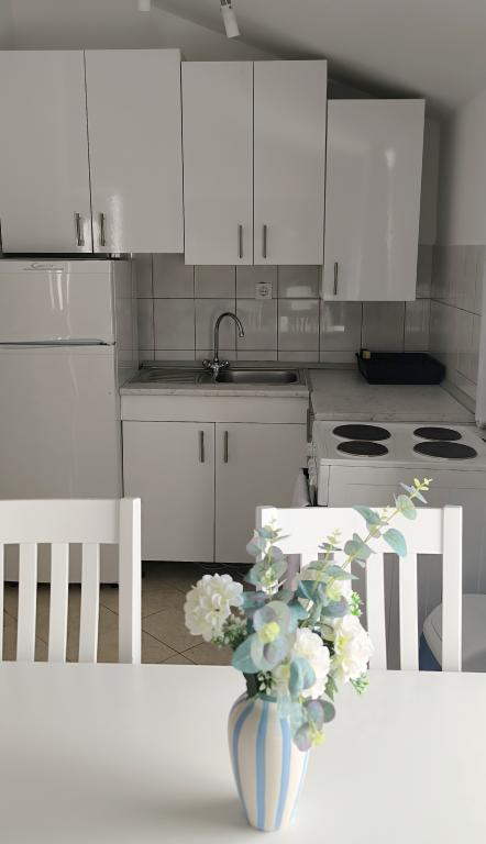Dobrodošli v naši hiši na čudovitem otoku Vir! Nudimo dva udobna apartmaja in en studio, kot nalašč za miren in sproščujoč dopust. Nahajamo se le 150 metrov od kristalno čistega morja, v mirni družinski ulici z zelo malo prometa, idealni za družine z otroki in vse tiste, ki želijo pobegniti od mestne gneče. Hiša je obdana s pisanim negovanim cvetjem, ki daje občutek topline in domačega vzdušja. Na voljo je brezplačno zasebno parkirišče, tako da vam med bivanjem ni treba skrbeti za svoje vozilo. V bližini sta supermarket in pekarna, ki vam omogočata enostavno in hitro nakupovanje med počitnicami. Središče Vira je oddaljeno 3 km, vsak večer pa je na voljo animacija za otroke in odrasle - idealno za tiste, ki želijo dan zaključiti z dobro uro. Otok Vir je znan po številnih lepih plažah, skritih zalivih in kristalno čistem morju – kot nalašč za raziskovanje in uživanje v sončnih dneh. Za enodnevne izlete so v bližini številne zanimivosti: Prelepo zgodovinsko mesto Nin je oddaljeno le 10 kilometrov. Narodni muzej Zadar je oddaljen 25 km. Slavna instalacija Pozdrav soncu v Zadru je oddaljena 26 km. Letališče Zadar je oddaljeno 34 km. Če iščete kraj za prave počitnice, stran od hrupa, a blizu morja in zanimivih znamenitosti - naši apartmaji so prava izbira za vas!