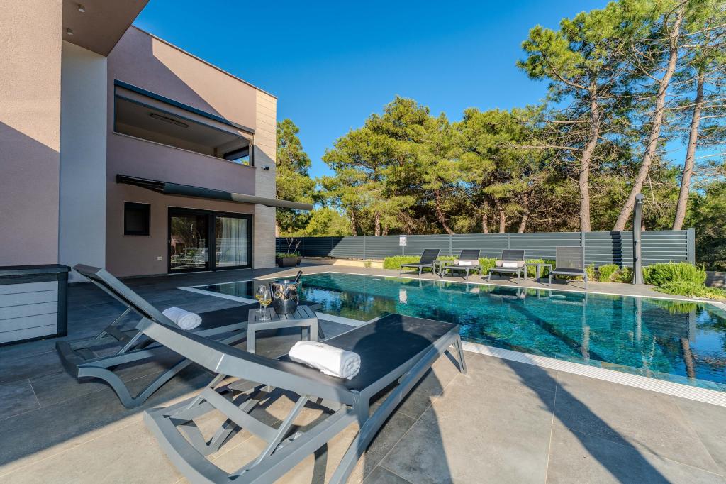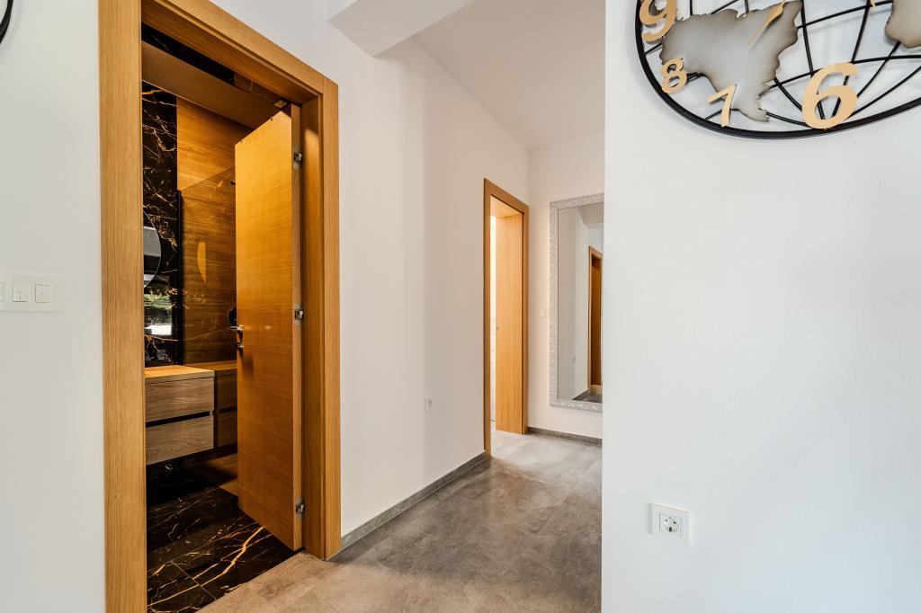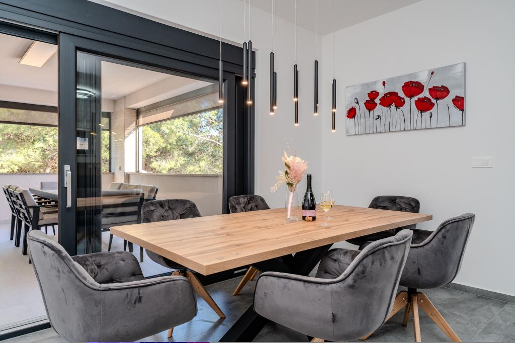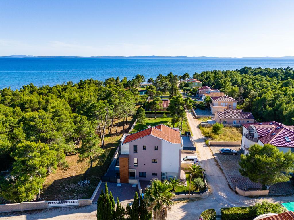 Popolnoma in moderno opremljen apartma v mirnem delu Vira, 80 m do morja in 800 m do centra. Apartma se nahaja v redko poseljenem in mirnem delu otoka, obdan z borovim gozdom