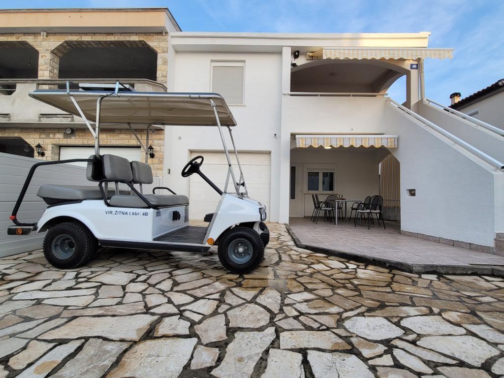 Oddam apartma za 4+2 osebe na otoku Vir, Žitna I., v slepi in mirni ulici, zagotovljeno parkirišče za 3 vozila, dvorišče, terasa, žar, oddaljenost od plaže in centra Vira 750 metrov. , 8 minut hoje ali 2 minuti vožnje. Z apartmajem je na voljo "Clubcar" za 4 osebe za doplačilo 15 eur na dan, možen je najem električnega mopeda za 15 eur na dan. Apartma je sestavljen iz dveh spalnic, kopalnice z WC-jem, kuhinje in dnevne sobe z jedilnico, v dnevni sobi je raztegljiv kavč. Klimatska naprava, wi-fi, TV, mikrovalovna pečica, ledomat, sušilnik za lase, likalnik.