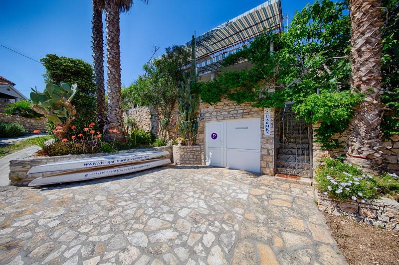 Apartmaji Carmen se nahajajo 30 m od morja in pristanišča ter so sestavljeni iz 3 namestitvenih enot različnih velikosti - za 2 do 6 oseb (posamezno). Apartmaji so popolnoma opremljeni, vsak z ločenimi balkoni in terasami, ločenimi vhodi, vrtom in varovanim parkiriščem. Če želite preživeti počitnice na Visu in uživati v njih, stran od mestnega vrveža, so apartmaji Carmen pravi kraj za vas. Veseli bomo, če boste izbrali naše apartmaje za preživljanje počitnic na zeleno-modrem Visu, stran od vrveža vsakdanjega življenja. Dobrodošli!