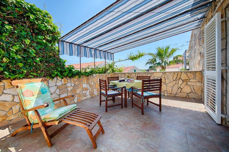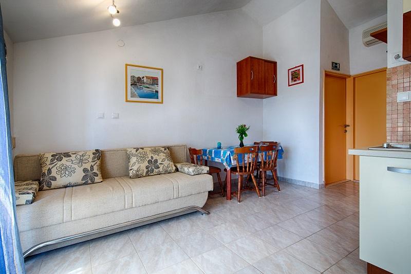 Turistična taksa nije vključena v ceno.Dnevna cena apartmaja vključuje najem apartmaja, stroške vode in elektrike, vso opremo v apartmaju, posteljnino in brisače (menjava enkrat tedensko), turistično takso, uporabo klimatske naprave do 8 ur (za daljšo uporabo se zaračuna tarifa 0,50 €/uro), uporabo pohištva na terasah in vrtu, uporabo žara, uporabo Wi-Fi-ja in parkirnega mesta. Dodatni stroški: - hišni ljubljenček v apartmaju (samo majhen) - 25 €/dan - varščina (povratna) - 100 €/apartma