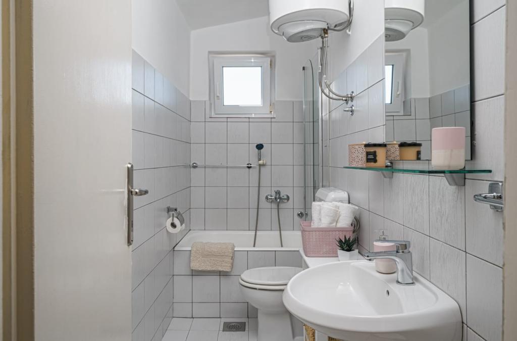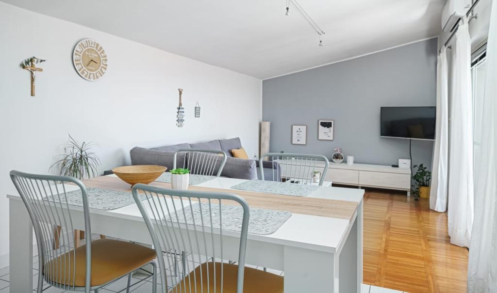 Apartma za štiri osebe, dve spalnici, velika dnevna soba s kuhinjo, kopalnica in velik balkon. Apartma je velik 65 m2. Objekt se nahaja v mirnem delu mesta. Deset minut hoje do plaže in centra.