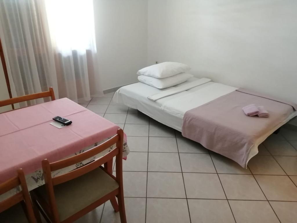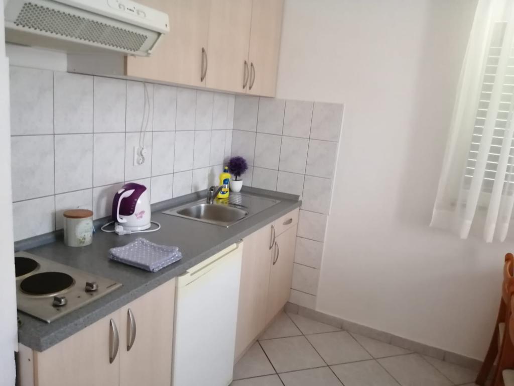 Najprej moramo pohvaliti prijazno teto Marijo, ki nas je pozdravila in nas nasmejano pospremila ter bila z nami za vsako naše vprašanje. Stanovanje je popolnoma čisto in ima vse, kar potrebujete za bivanje, in lepo teraso, vsekakor lepšo v živo kot na fotografijah. Blizu plaže, ugodne cene storitev v mestu.