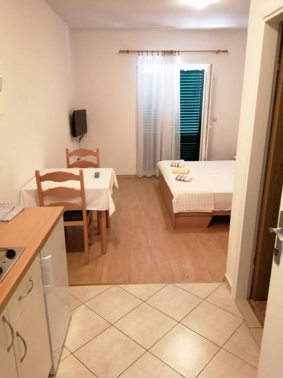 Studio nas je sprejel čist in urejen, zelo lepo vzdrževan. Imeli smo vse, kar smo potrebovali. Okolica je mirna in tiha, plaža ni daleč, prav tako ostali objekti, kot so restavracije, kavarne in pekarne. Gospa Marija je zelo prijazna in dostopna, z veseljem odgovori na vsako vprašanje in poskrbi, da je bilo naše bivanje čim boljše. Vsako priporočilo!