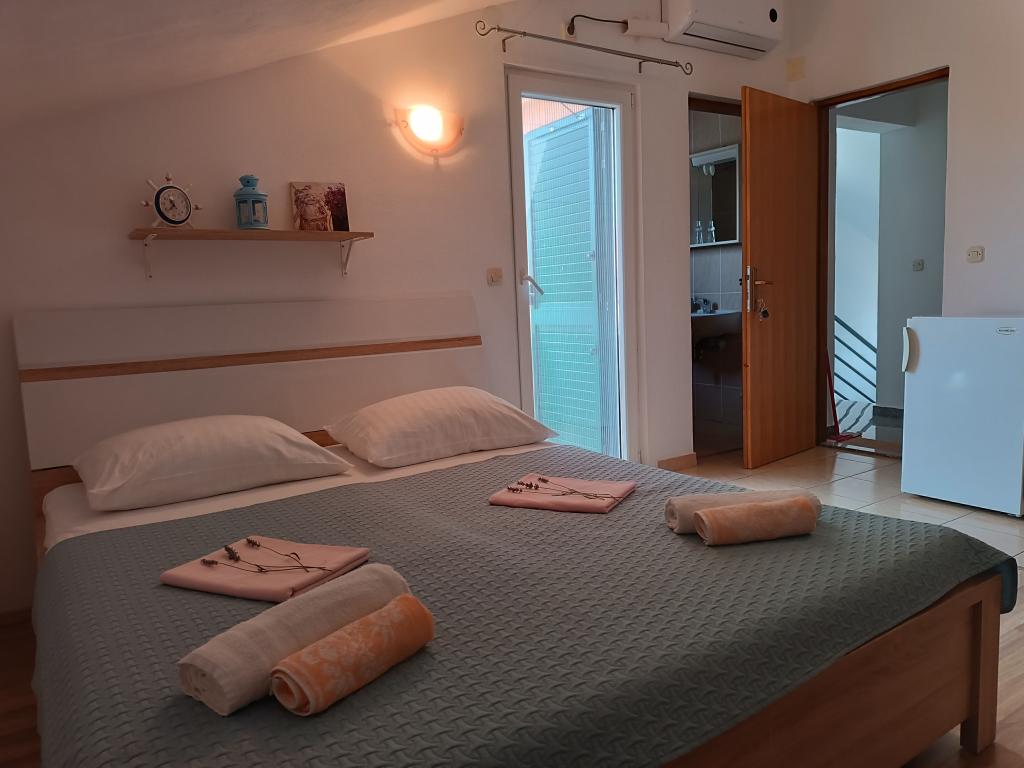 APARTMA ZA 4 OSEBE obsega 2 spalnici (ena ima balkon), kuhinjo z dnevno sobo s teraso in kopalnico. Opremljen je s pomivalnim in pralnim strojem. za blago.Velik je 75 m2...STUDIO APARTMA je namenjen za 2 osebi, velik 26 m2 s pripadajočo teraso. Nahaja se v mansardi v izmeri 28 kvadratnih metrov. Vsi apartmaji so klimatizirani, zagotovljen je zunanji žar. Apartmaji se nahajajo v bližini hotelov Imperial in Olympia, le 500 m stran pa se nahajajo plaže, restavracije, bari in zabaviščni parki za najmlajše. Ob večerih lahko uživate v različnih kulturnih dogodkih. Priporočamo tudi obisk mesta Šibenik (približno 10 km stran), ki je znano po katedrali, trdnjavah in bogatem zgodovinskem središču. Tu sta tudi neizogibna narodna parka Krka in Kornati ter turistično naselje Solaris. Za tiste bolj pogumne je na voljo tudi bungee jumping s šibeniškega mostu, od koder se ponuja čudovit razgled na mesto. Veselimo se vašega prihoda.