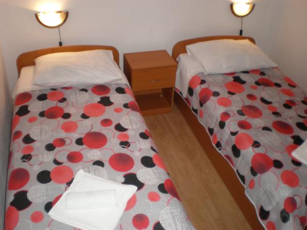 Apartmaji Bogdan se nahaja v mirnem delu mesta na površini 1100 m2. Objekti se nahajajo manj kot 10 minut od centra mesta in 15 minut hoje do morja. Velik vrt obdan z trate, cvetje in zelenje ponuja gostom udobno in mirne počitnice. Vsi trije apartmaji se nahaja v pritličju. Stanovanje A1 kapaciteta 2 1 oseba, stanovanje A2 4 1 osebo in A-3 kapaciteta 6 2 število oseb. Oprema: gostinski vrt garnitura, gugalnice, parkirišče za več avtomobilov, apartma A1 ima svojo garažo, ki se nahaja tik ob stanovanju, žar. Na voljo je tudi namizni tenis, igrišče za otroke. Vsi apartmaji so klimatizirani in opremljeni s; SAT TV, wi-fi, pralni stroj, hladilnik z zamrzovalnikom, malih gospodinjskih aparatov; aparat za kavo, grelnik vode, opekač kruha. in vse ostalo, kar je potrebno za vzdušje domačnosti. Prijazni gostitelji so na voljo gostom (let izkušenj), za vse je potrebno nadaljnje informacije ali pomoč kakršne koli vrste.