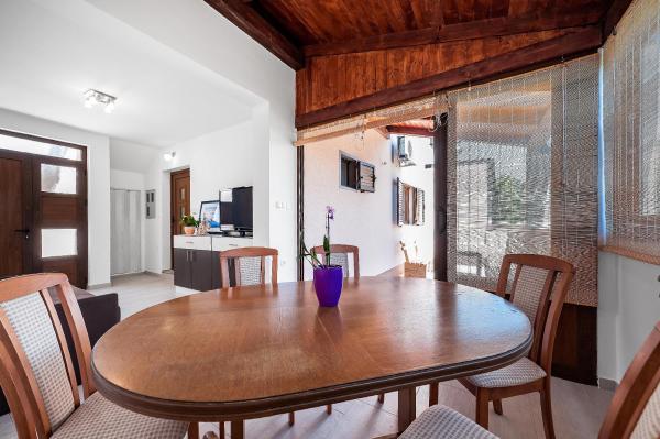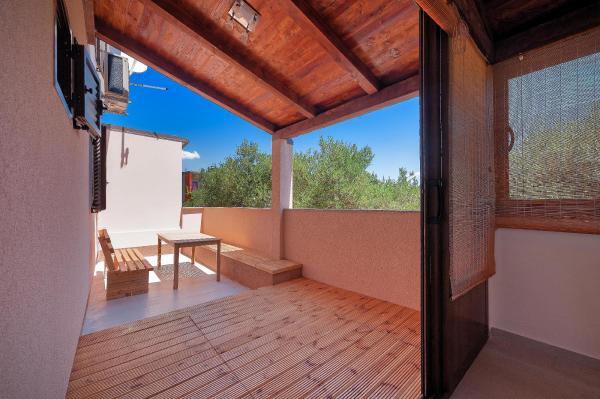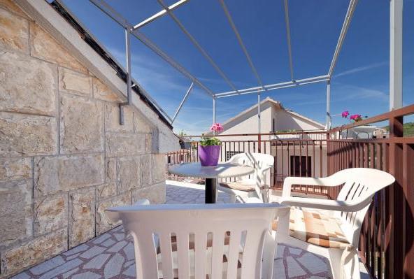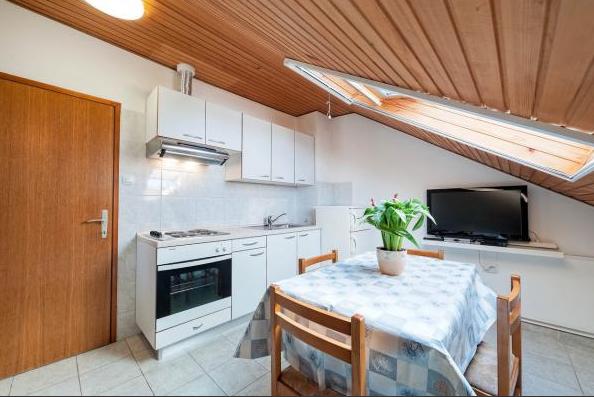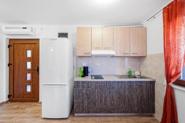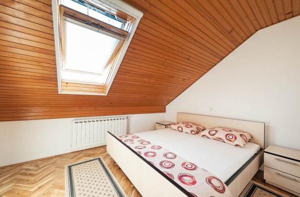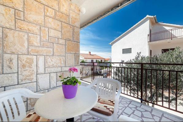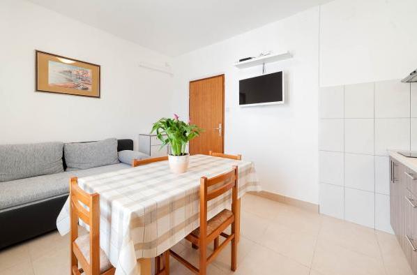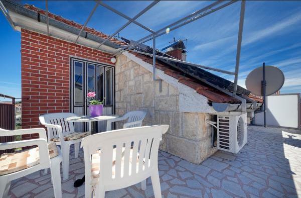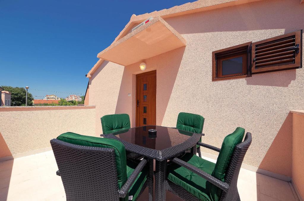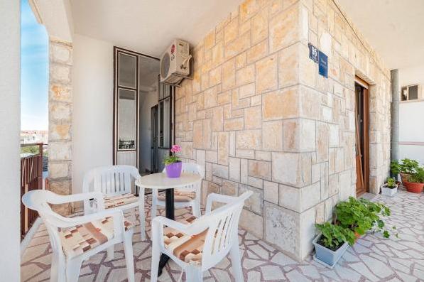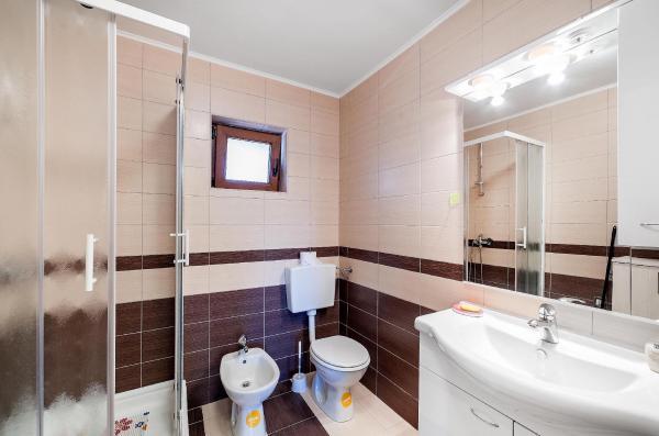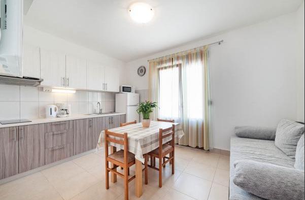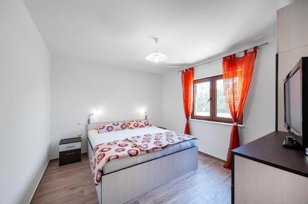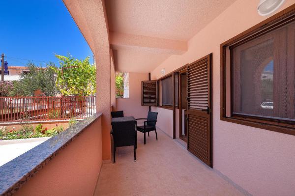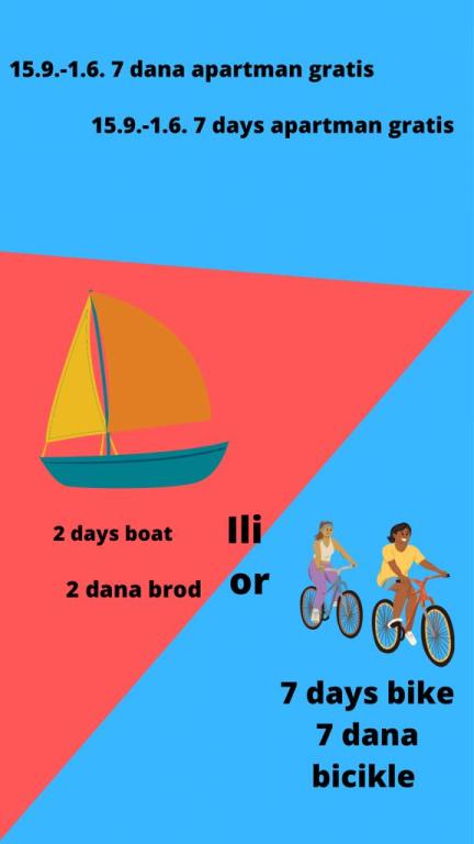 Popolnoma in moderno opremljeni apartmaji v mirnem predelu Vodic, 300 metrov od morja. Objekt se nahaja 5 minut hoje od Modre plaže in hotela Punta ter 15 minut od centra Vodic. Na plaži se nahaja največji vodni park na Jadranu, namenjen otrokom in odraslim. Nudimo kakovostno namestitev v novih, popolnoma opremljenih in modernih apartmajih. Zgornji apartma velikosti 48 m2 obsega spalnico, kopalnico s tušem, kuhinjo z jedilnico, dnevno sobo s posteljo, dve terasi s pogledom na morje, dva LCD TV/SAT sprejemnika, klimatsko napravo, brezplačen WiFi internet in parkirno mesto. Večje stanovanje v pritličju, ki meri 70m2, obsega dve spalnici, kopalnico s tušem, kuhinjo, jedilnico, dnevno sobo s posteljo, dve veliki terasi, tri LCD TV/SAT sprejemnike, klimo, brezplačen WiFi internet in dve parkirni mesti. prostori.