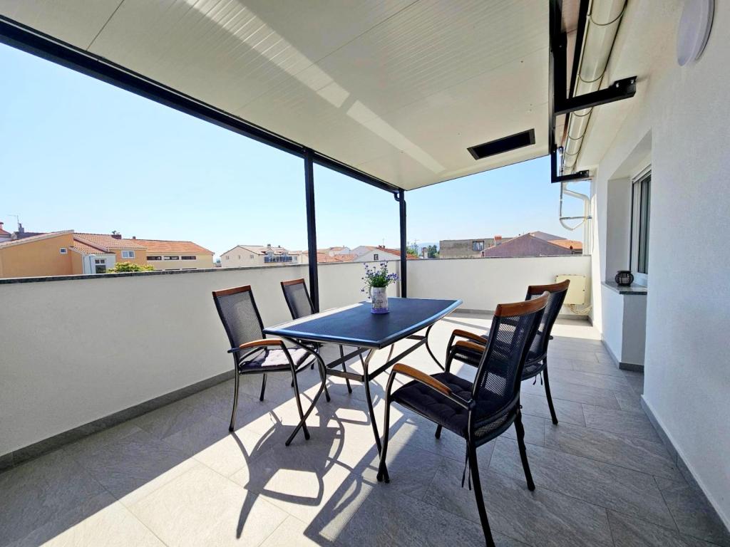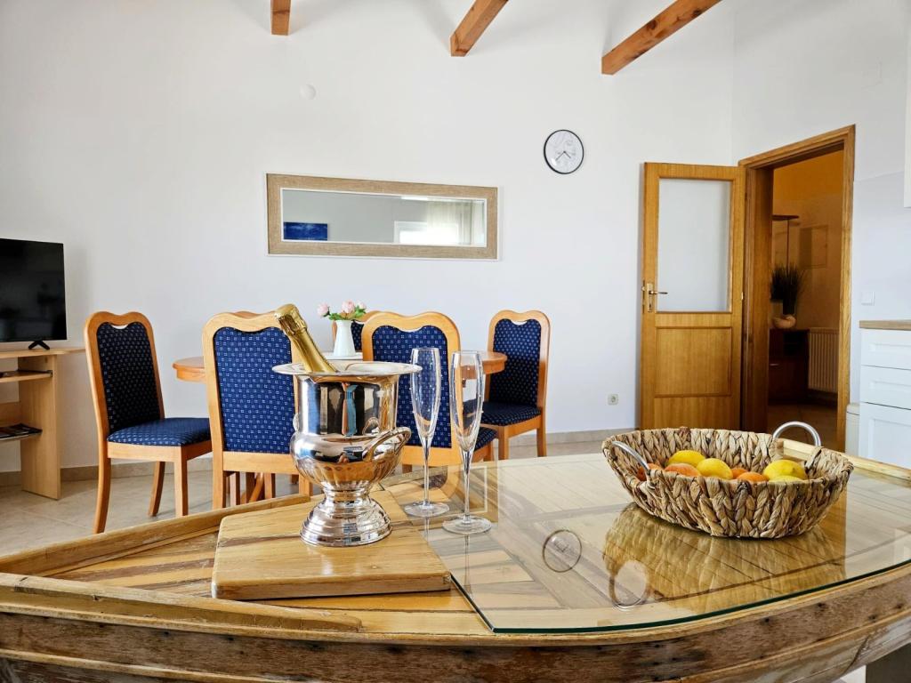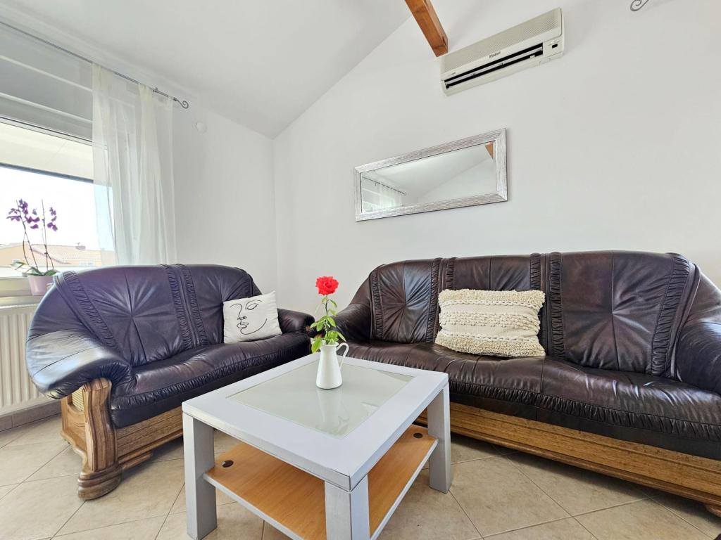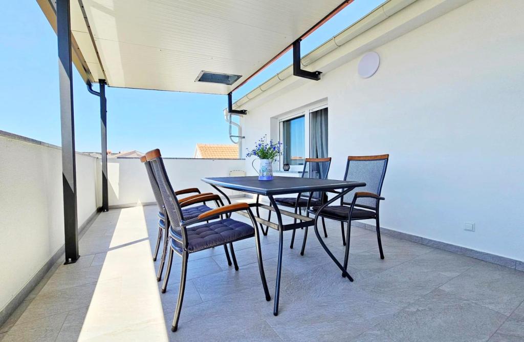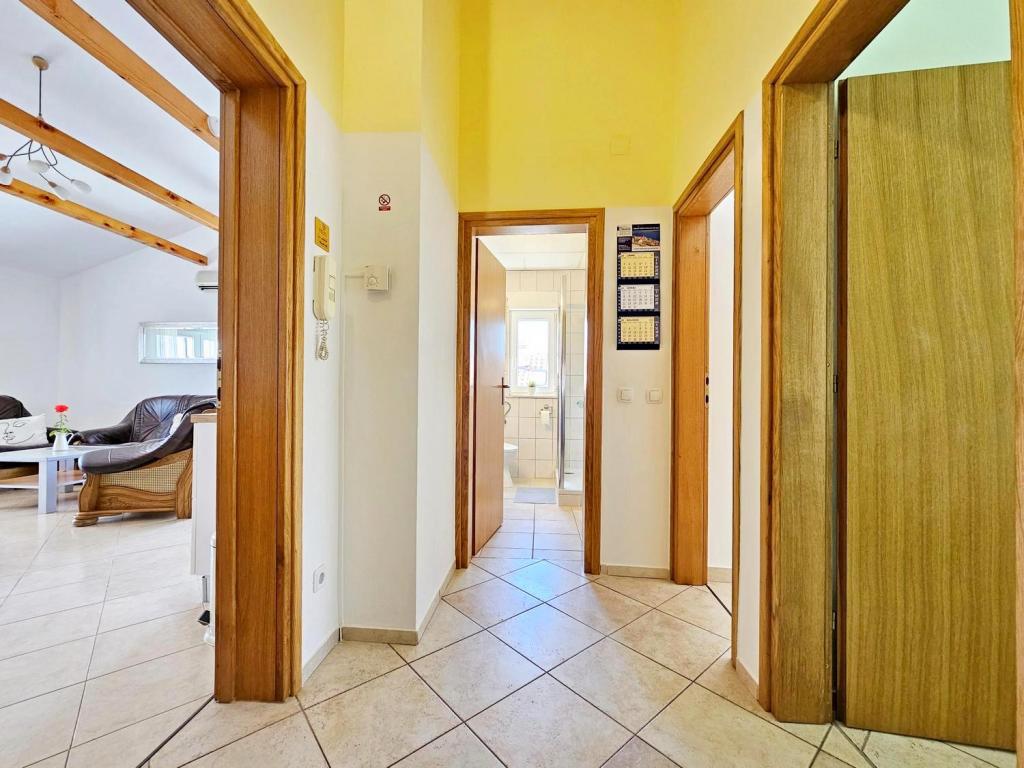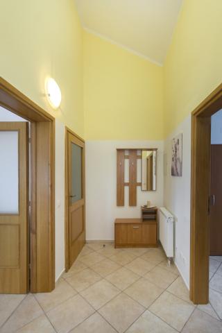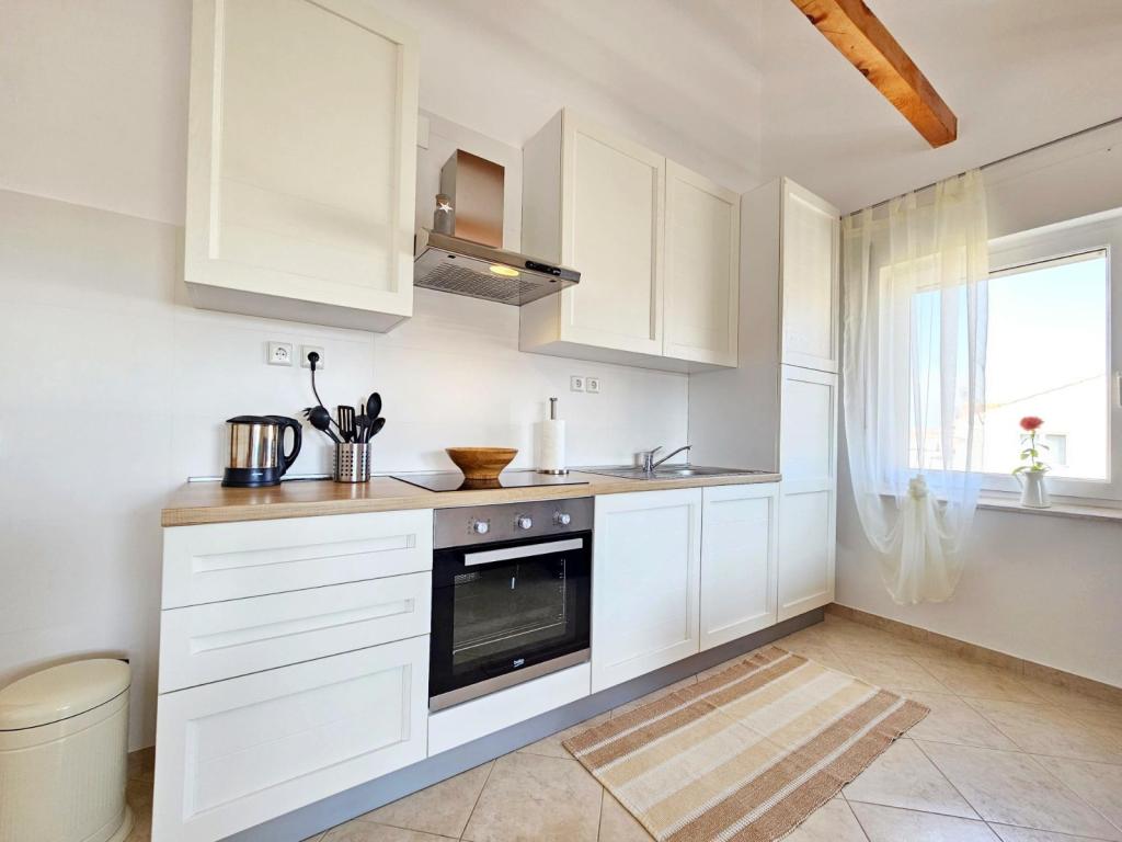 NOVO!!! Dobrodošli naši dragi gostje v prenovljenih prostornih apartmajih velikosti 70 m2 v družinski hiši: velika dnevna soba povezana s kuhinjo in jedilnico ter izhodom na veliko teraso 16 m2 s pogledom na morje; spalnica z zakonsko posteljo in dodatnim balkonom, druga spalnica z 2 ločenima posteljama, velika kopalnica in hodnik. V istem nadstropju 2 popolnoma enaki stanovanji z novozgrajenimi velikimi terasami! Objekt se nahaja 3 minute od plaže in prve trgovine. Udobno in prostorno! Čisto in urejeno! V sklopu objekta je varno in pokrito parkirišče. WiFi, klima, SAT TV, žar, zunanji tuš, varovano parkirišče in turistična taksa vključena v ceno! Za vse dodatne potrebe so vam prijazni gostitelji vedno na voljo!