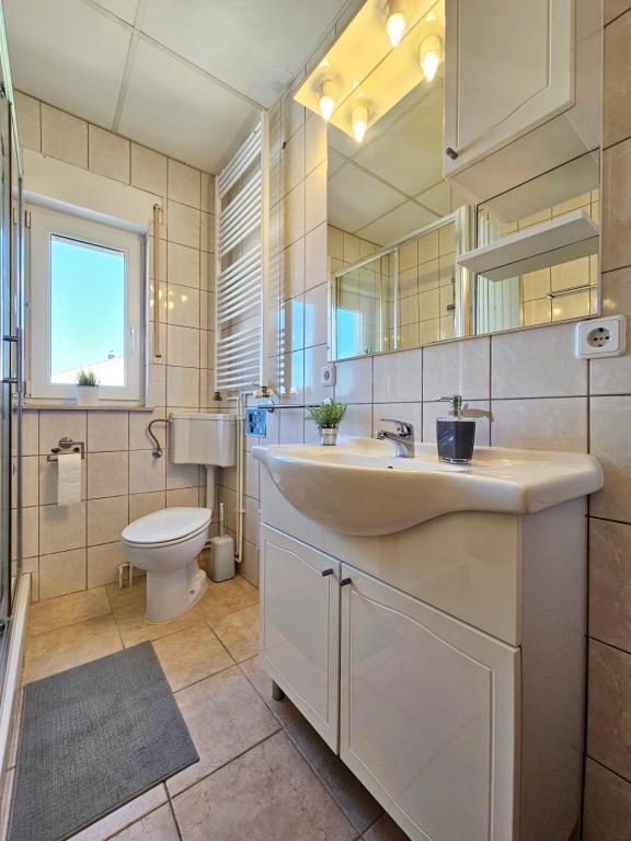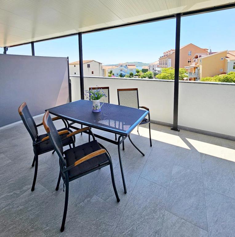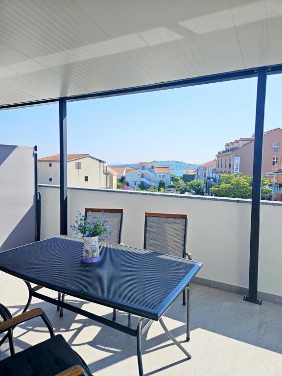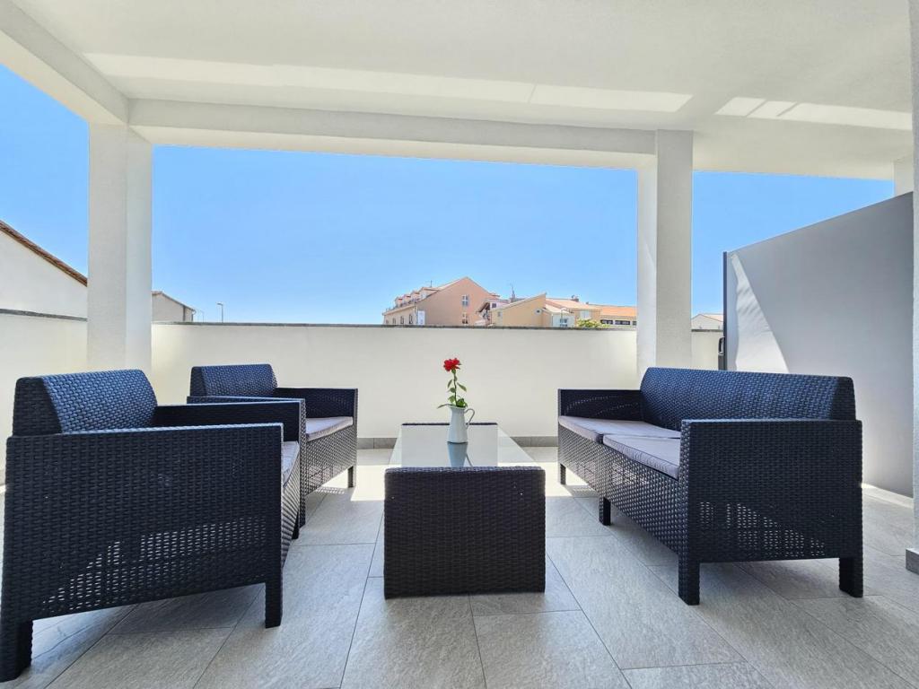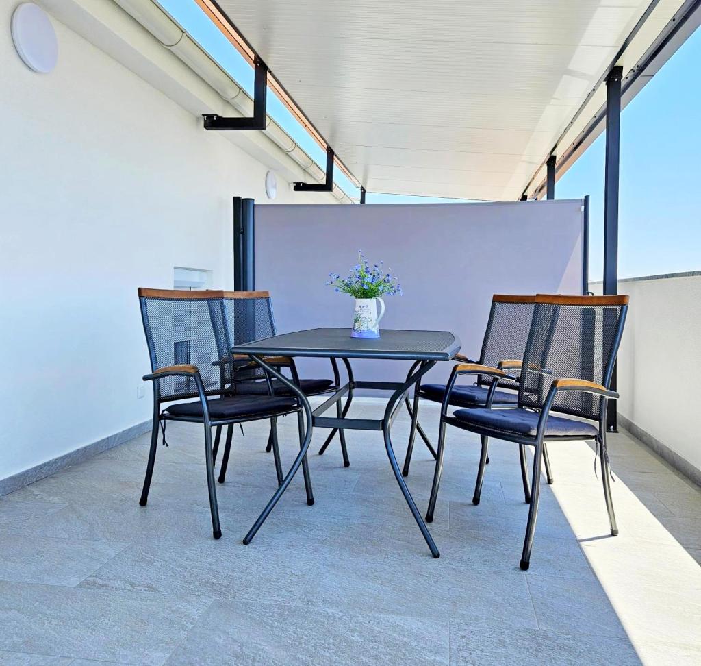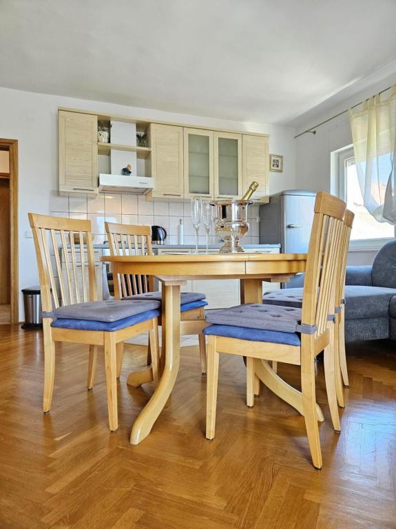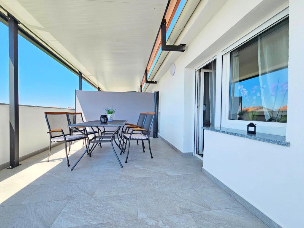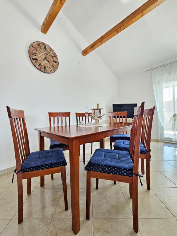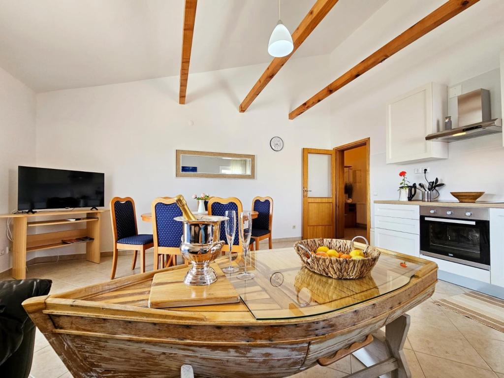 NOVO!!! Dobrodošli naši dragi gostje v prenovljenih prostornih apartmajih velikosti 70 m2 v družinski hiši: velika dnevna soba povezana s kuhinjo in jedilnico ter izhodom na veliko teraso 16 m2 s pogledom na morje; spalnica z zakonsko posteljo in dodatnim balkonom, druga spalnica z 2 ločenima posteljama, velika kopalnica in hodnik. V istem nadstropju 2 popolnoma enaki stanovanji z novozgrajenimi velikimi terasami! Objekt se nahaja 3 minute od plaže in prve trgovine. Udobno in prostorno! Čisto in urejeno! V sklopu objekta je varno in pokrito parkirišče. WiFi, klima, SAT TV, žar, zunanji tuš, varovano parkirišče in turistična taksa vključena v ceno! Za vse dodatne potrebe so vam prijazni gostitelji vedno na voljo!