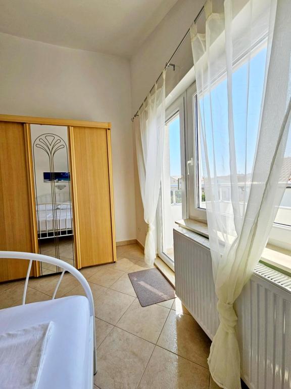V tem apartmaju smo imeli odlično bivanje, zelo prostorno in urejeno, vrhunsko teraso, zasebno senčeno parkirišče v vili. Lastnik zelo prijazen in v veliko pomoč, Čiščenje je bilo opravljeno po enem tednu, vse je bilo zamenjano brisače, rjuhe in tudi talne preproge je bilo nikelj kot v hotelu, ampak bolje Morje je v bližini 5 minut peš, v ulici 50 m od vile pa je pekarna in zelo lep majhen supermarket za manjše nakupe. Mesto je v bližini in dan in noč je zelo živahno. Vila je zelo tiha, zelo sproščujoče prijetna za počitnice