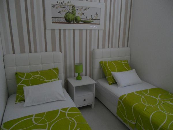 Resnično je vredno živeti tukaj med počitnicami. V opremi je vse, kar pričakujemo - klimatska naprava, pralni stroj, čiste brisače, velik hladilnik, popolnoma opremljena kuhinja, vključno s pečico. Ravno odlični dodatni pogoji v apartmaju in velika terasa z žarom in ležalnikom. Super udobne postelje. Zelo prijazni in kontaktni lastniki. Zelo enostavno in dobro sporazumevanje v angleščini ali nemščini. Edina slaba stran in hkrati plus je oddaljenost od morja približno 15 minut hoje, ob večerih pa tiho in lahko sedeš stran od civilizacije v luči zvezd in lune. Srčno priporočam. ps. zelo lepo veliko parkirišče