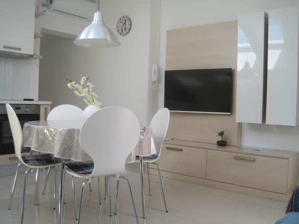 Družinska hiša s sodobno opremljenimi apartmaji s pogledom na morje iz vseh apartmajev. Apartmaji imajo zagotovljen parkirni prostor pred stavbo. Nahaja se v bližini morja in 300 metrov od znamenite mestne plaže pod hotelom Olympia.