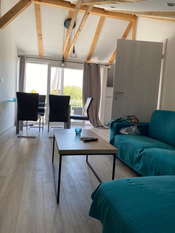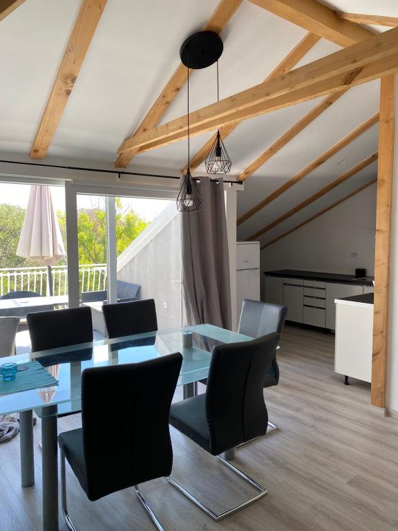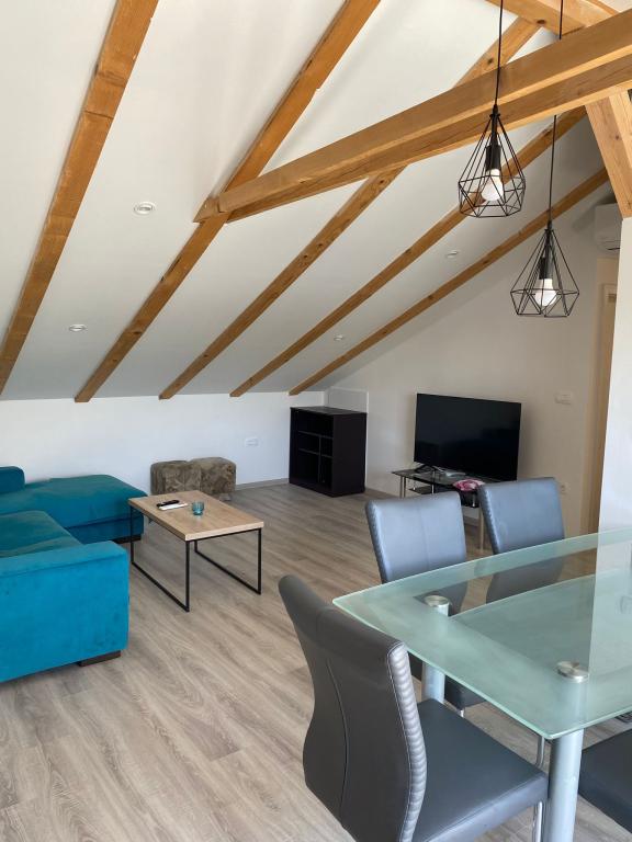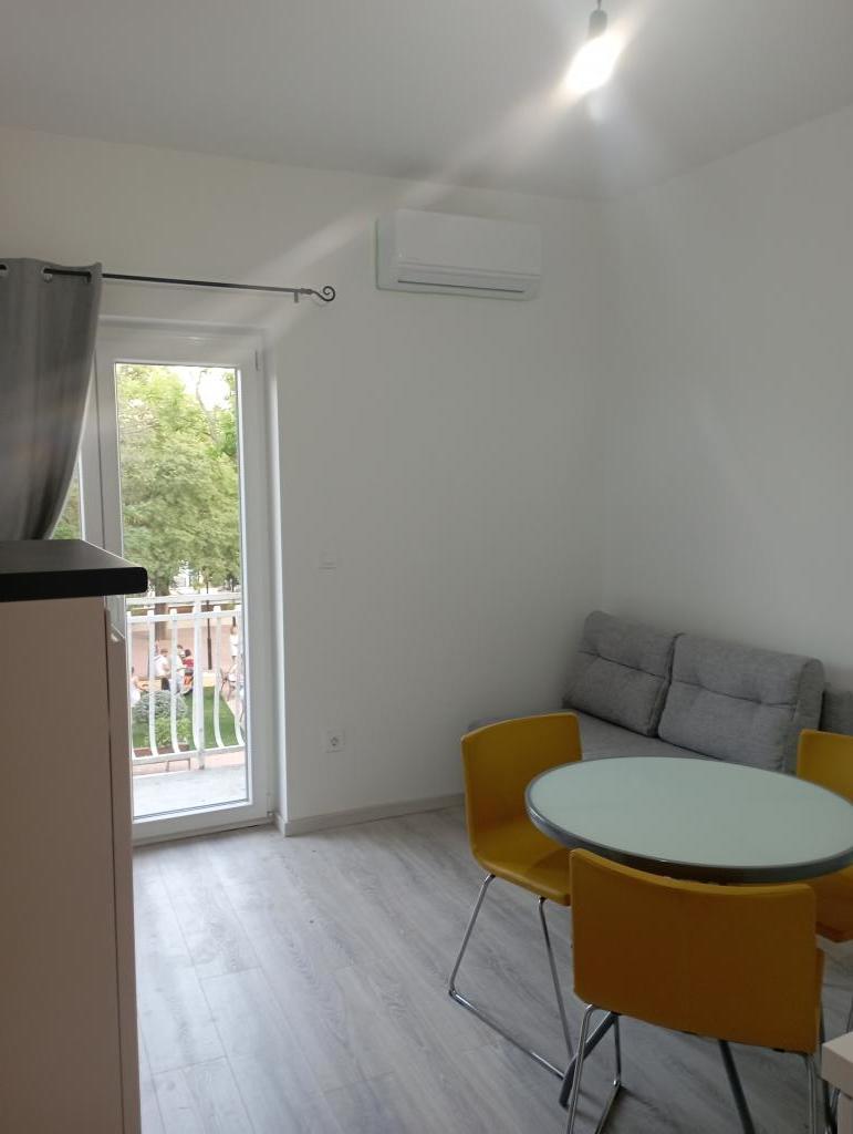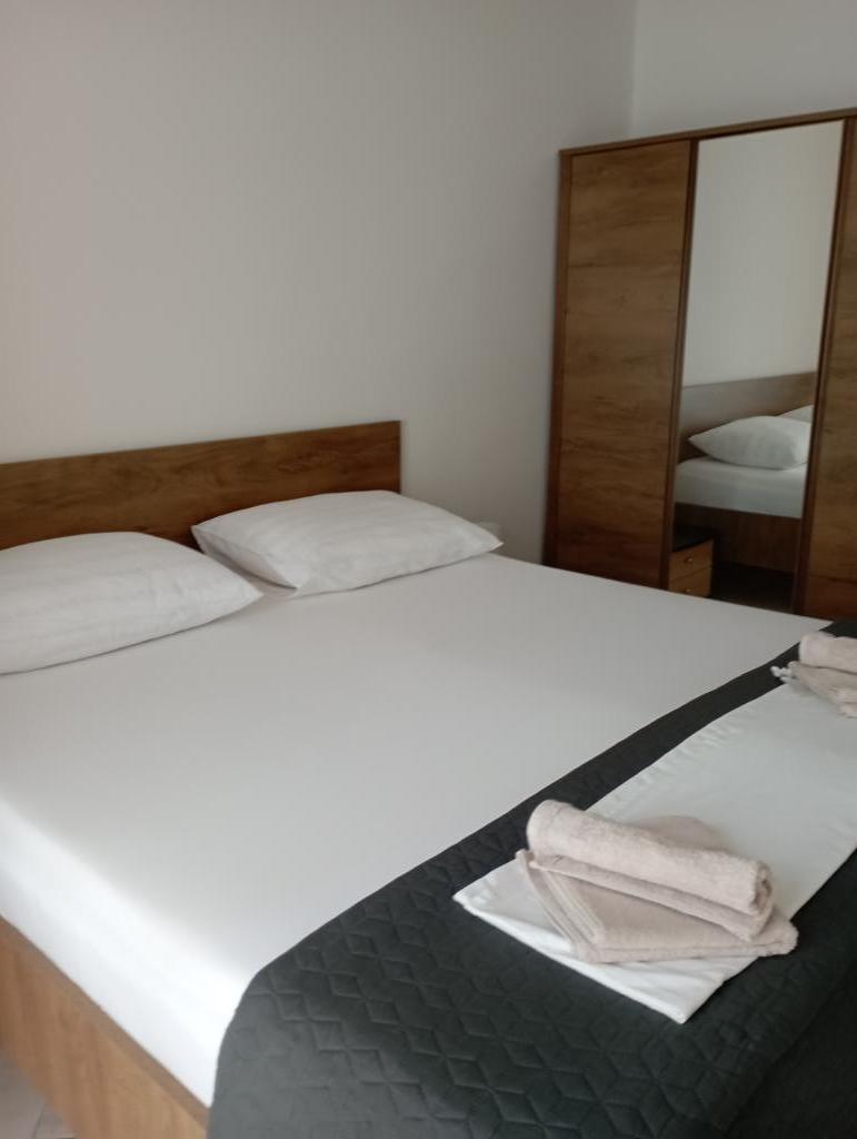 Apartmaji so udobne in se nahaja v mirnem delu smernic, medtem ko v bližini centra usmerjevalnega (3 min hoje) in peščenih plaž (6 minut hoje). Vsak apartma ima dve spalnici, dnevna soba, kuhinja, jedilnica, wc, tuš, balkon z mizo in stoli s pogledom na morje in otoke, internet, TV, klima, parkirišče, obstaja pa možnost uporabe žara.