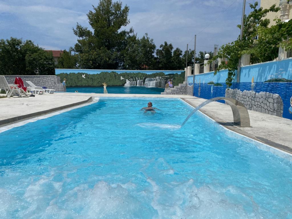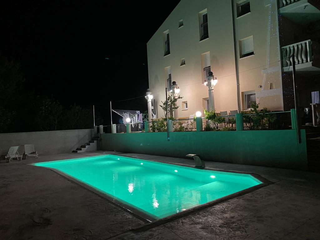 Razširitev rekreacijskega prostora na 1260 m2 za različne športne aktivnosti. Apartmaji IVAN V so poleg novih vsebin deležni tudi besede RELAX. V obratovanju je nov bazen z ogrevano slano vodo in jacuzzijem za vse goste. Cepljeni proti Covid-19. Pošiljamo potrdila o plačilu rezervacije. Vsi stari gostje imajo 10 % popust na standardni obrok za to obdobje, prav tako gostje iz Zenice; popusta ni mogoče seštevati z drugimi popusti. Vsak apartma ima pravico do uporabe bazena in jacuzzija na dvorišču objekta. Kapaciteta objekta je 18 ležišč. Možnost organizacije prevoza do letališča Split ali letališča Zadar (50 km) z doplačilom.