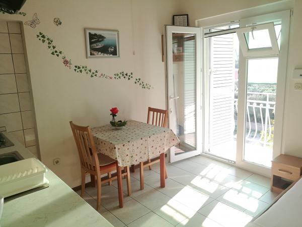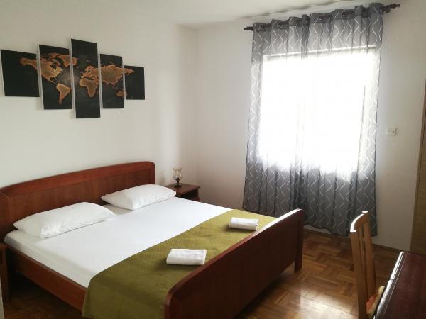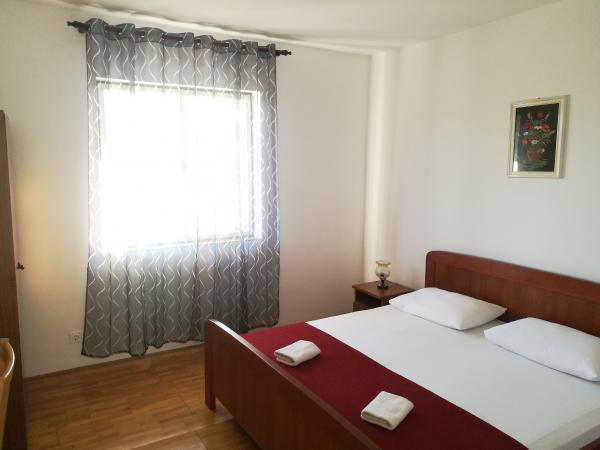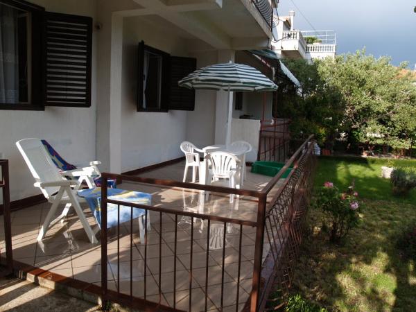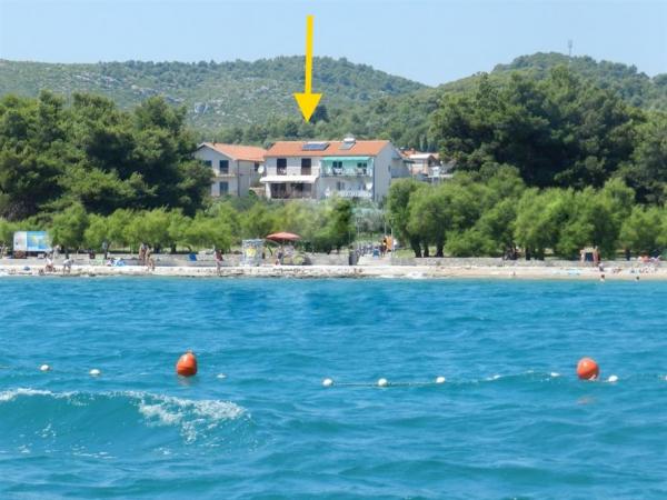 Hiša se nahaja v mirni soseski prvi red do morja in je sestavljena iz 4 apartmajev. Ima čudovit pogled na morje, plaža z grmičevjem in betonskimi deli pa je idealna za otroke. Plaža ima veliko udobja, tako da lahko uživate v jet-ski, pedalini, vodni park, namizni tenis, trampolin in mnoge druge aktivnosti. Če želite odmor od vseh dejavnosti, sončenja in plavanja, lahko odidete v počitniških mestih v bližnjih kavarnah in restavracijah, kjer lahko uživate v osvežilnih pijačah in dalmatinskih specialitetah.