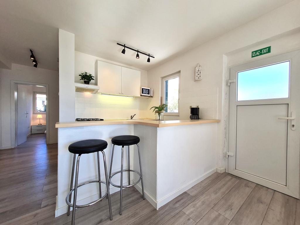 Apartmaji postopoma v Vodicah se nahaja 20 metrov od morja v bližini vso potrebno opremo in še idealna lokacija za počitnice. Imajo skupaj 6 različno velikih apartmajev in parkirišče za vsako stanovanje. Zelo središče mesta, trgovine, marina, restavracije, itd so v 15 minut hoje od stanovanjskega bloka. Zunanji žar je na voljo vsem gostom, ter podnebne in lokalni davki se ne zaračuna dodatno.