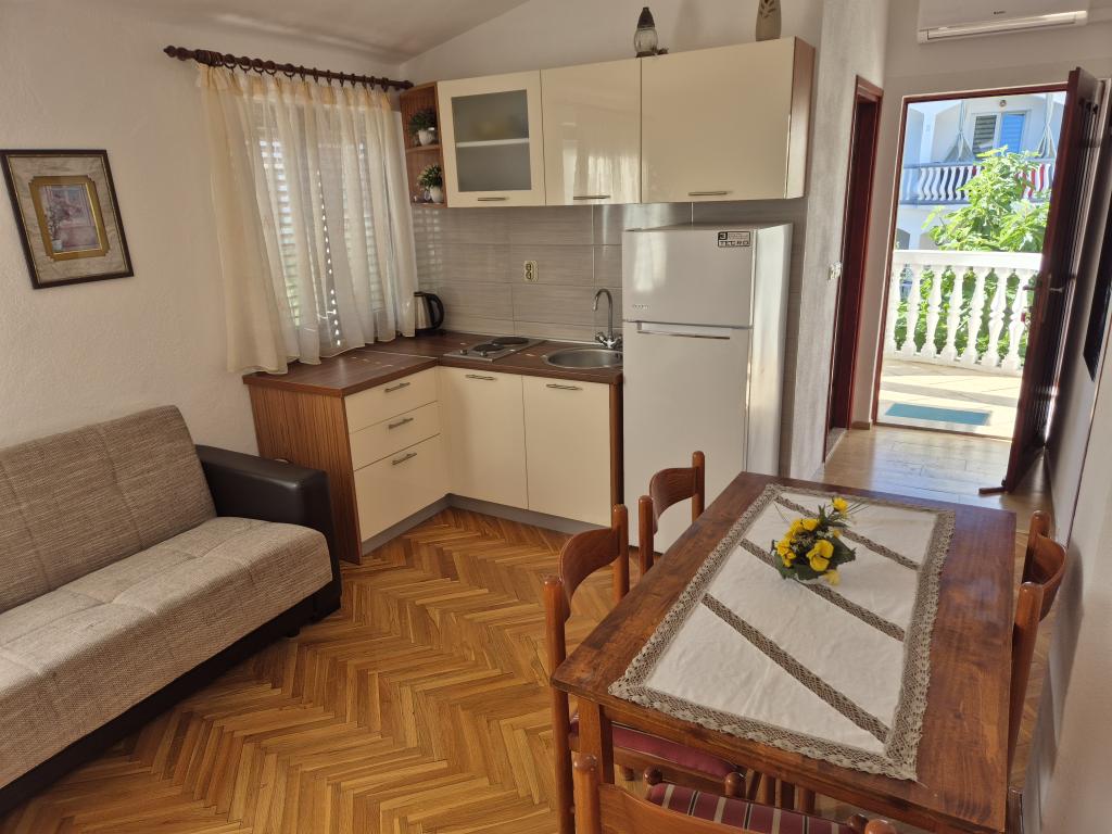 Zelo prijazni in dostopni gostitelji. Za dobrodošlico domače vino in smokovje. Stanovanje je zelo čisto in urejeno, z lepo teraso spredaj, obdano z zelenjem in mrazom. Bližina plaže in promenade. Vse pohvale!