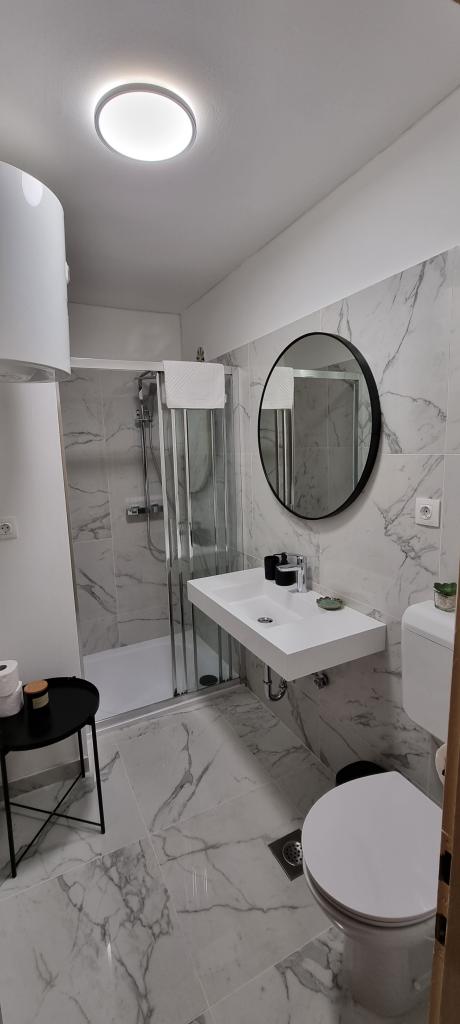Živeli smo v pritličju v prostornem stanovanju z veliko teraso, ki nam je dajala zasebnost in sprostitev v senci. Do apartmaja je dostop z vrta z žarom in sedeži. Prostori stanovanja so čisti. V stanovanju je bilo veliko razkužil. Dvorana in dnevna soba imata novo, moderno pohištvo. Morje do plaže (prodnata, peščena) je dobesedno skok iz stanovanja. Iz ležalnika se odpeljete do stanovanja, za ohlajeno melono da bi uživali ob morju. Tam boste našli tudi odlično restavracijo z žarom. Apartma se nahaja v hiši, ki je na mirni, mirni lokaciji. Lepo sprehajališče ob morju vodi do središča mesta, ali hitro bližnjico skozi mesto. Bodite prepričani, da si najamete kolo in obiščete bližnjo vasico Tribunj. Kamnite hiše, ozke ulice. Na poti tja ali nazaj v stanovanje se boste odpravili skupaj s figovimi nasadi - dobrega okusa. Če želite potovanje v Šibenik, se prepričajte, da uporabite lokalno Jadrolinia. Tja vas bo popeljala legendarna transportna ladja Tijat in odkrili boste tudi lepote okoliških otokov. Lastnik milanskih apartmajev je prijeten in skrben gostitelj.