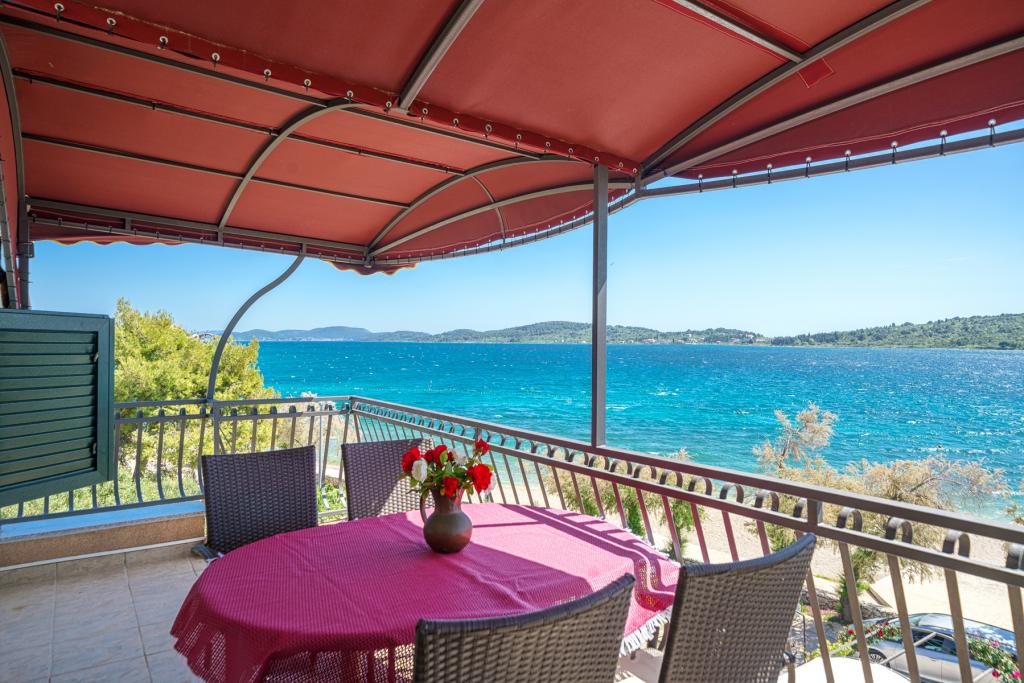 Vodice Apartmaji Marija Vulić le 6 metrov od morja, prva vrsta do morja. Najem apartmaja v Vodicah je možen za več oseb. Velika plaža tik pred apartmajem, vse urejeno, morje čisto. Izredno atraktivna lokacija z neštetimi vsebinami za vse generacije, tako mlade kot starejše. Bližina trgovin, centra, gostinskega programa, diskoteke, zabave na prostem, beach cocktaila, glasbe, ribolova. Varovano parkirišče, klima, Wi-Fi, satelitska televizija, kuhinja, kopalnica, spalnica, dnevna soba, res lepa terasa in pogled na razčlenjeno jadransko obalo. Pred hišo sta dva priveza za čoln. Izberite enega izmed 3 apartmajev v ponudbi še danes, da si zagotovite najboljši termin. Pri nas se boste počutili kot doma. Spoštujemo vašo zasebnost in smo vam vedno na voljo, če potrebujete nasvet.