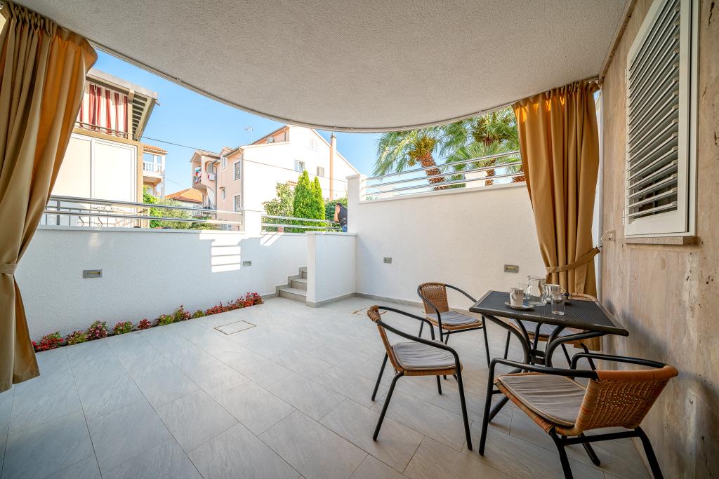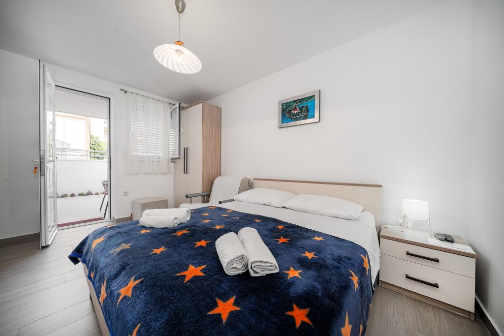 Apartmaji Marina se nahajajo v najlepšem in mirnem delu Vodic, 50 metrov stran od Modre plaže in 5 minut hoje od središča mesta. Hiša je okrašena z urejenim zelenjem in ima čudovit pogled na morje. Vsi ustrezni objekti se nahajajo v neposredni bližini nepremičnine. Veselimo se vašega prihoda ...