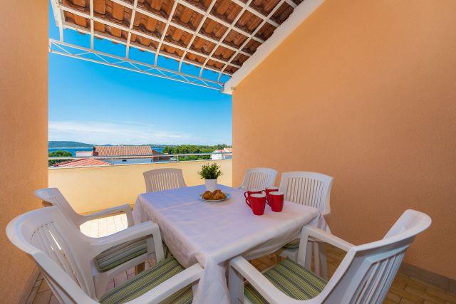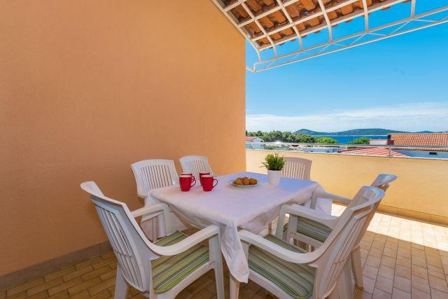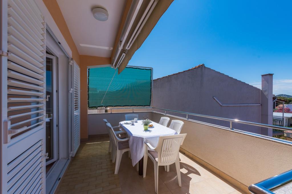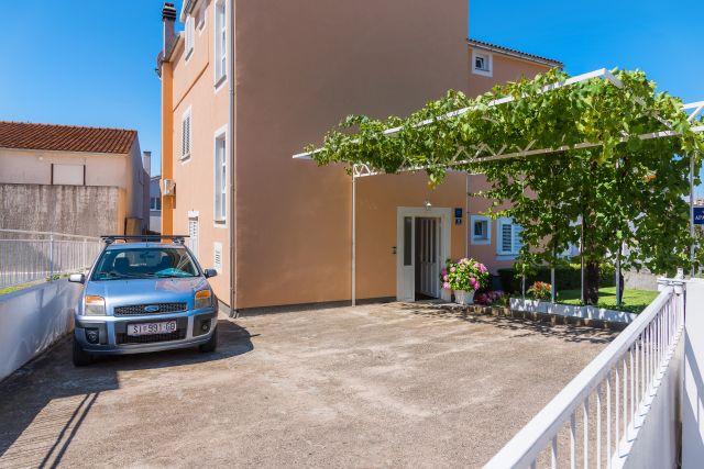 Apartmaji Marko se nahajajo v ulici Blata, mirnem delu mesta Vodice v bližini hotela Punta. Glavna plaža Plava Plaža je od apartmaja oddaljena 100 m, središče mesta pa 300 m. Imamo 3 apartmaje: apartma Ap 4+2, apartma Ap 4+1 in apartma Ap 2. Apartma 4+2 vključuje 2 spalnici z zakonsko posteljo, 1 kopalnico, dnevno sobo z raztegljivim kavčem, kuhinjo in teraso. Apartma 4+1 vključuje 2 spalnici z zakonsko posteljo, 1 dnevno sobo z raztegljivim kavčem, kuhinjo, kopalnico in teraso. Apartma Ap 2 vključuje 1 spalnico z zakonsko posteljo, kopalnico, kuhinjo z jedilnico in dnevno sobo z raztegljivim kavčem ter balkon z mizo za dve osebi. Vsak apartma je opremljen s pralnim strojem in klimatsko napravo. Parkirišče je zagotovljeno na dvorišču našega objekta. Gostje lahko uporabljajo žar. Oseba več 20,00 EUR/dan 4+ osebe, Dobrodošli!