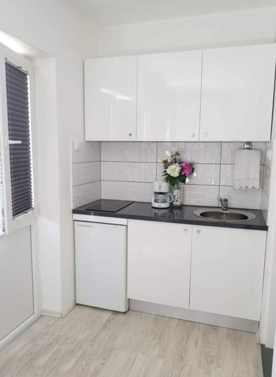 Skrita majhna, zelo funkcionalna in čista garsonjera z udobno posteljo, dobro opremljeno kuhinjo. Res imaš vse, kar lahko potrebuješ. Nahaja se nekaj minut od najbližje plaže, kjer imate kavarne in restavracije, in deset minut hoje do centra mesta, vendar v zelo mirnem predelu, kjer se lahko dobro naspite in spočijete. Lastnica Milena je čudovita, mlada in izjemno nevsiljiva in ustrežljiva ženska, ki se trudi po najboljših močeh biti na uslugo. Z veseljem še pridemo