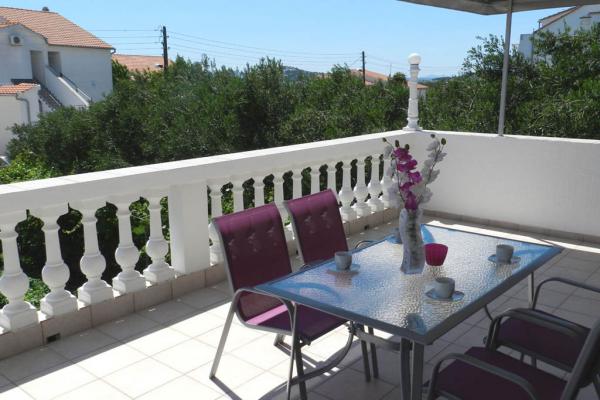 Družinska hiša z apartmaji se nahaja v mirnem delu mesta in ponuja namestitev v 2 luksuznih apartmajev, idealno za manjše skupine ali večje družine. Hiša se nahaja na mirni in atraktivni lokaciji. Do prodnate plaže je le 3 minut hoje. Lahko sprehodite do središča Vodic po lepom sprehajališču ob morju. V drugo smer, vam priporočamo, ko se sprehodite ob obali v bližini Tribunj, eno od redkih dalmatinskih mestih, ki je ohranilo čar ribiških vasicah. Naši luksuzni apartmaji v celoti su opremljeni za udobno bivanje 4-5 oseb. Vsi apartmaji so opremljeni s klimatsko napravo, satelitsko televizijo. Vsak apartma ima 2 spalnice, veliko jedilnico z dnevno sobo, veliko teraso / balkon, kopalnico s tušem in pralnim strojem, popolnoma opremljeno kuhinjo. Vsak apartma ima poseben vhod in svoj parkirni prostor. V apartmajih so dobrodošli tudi hišni ljubljenčki. Na pokrito teraso v pritličju je velika lesena hiša za psa.