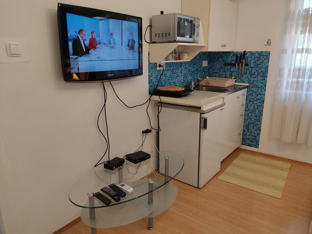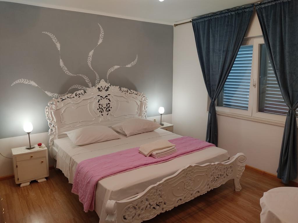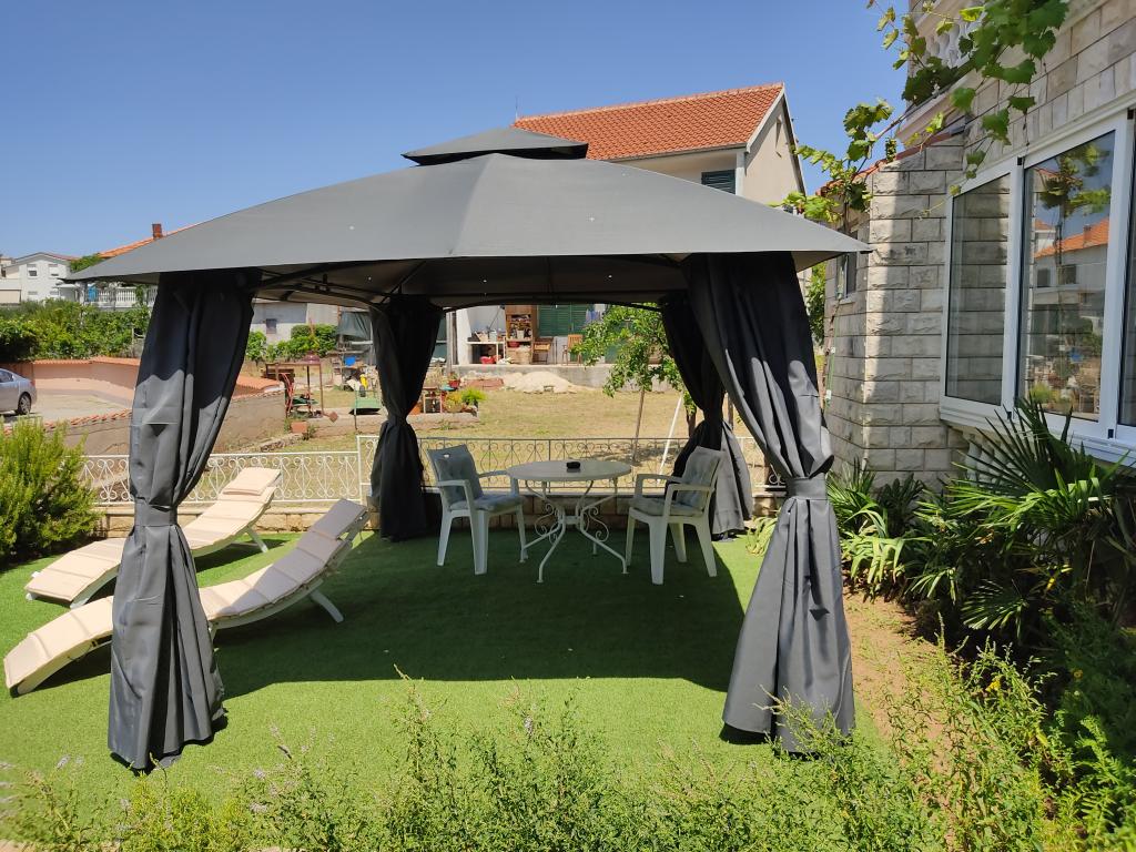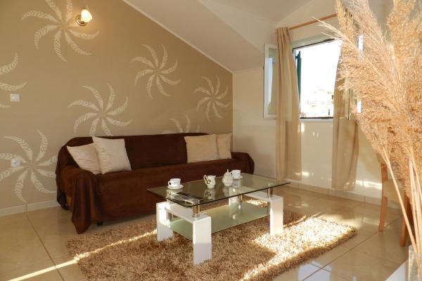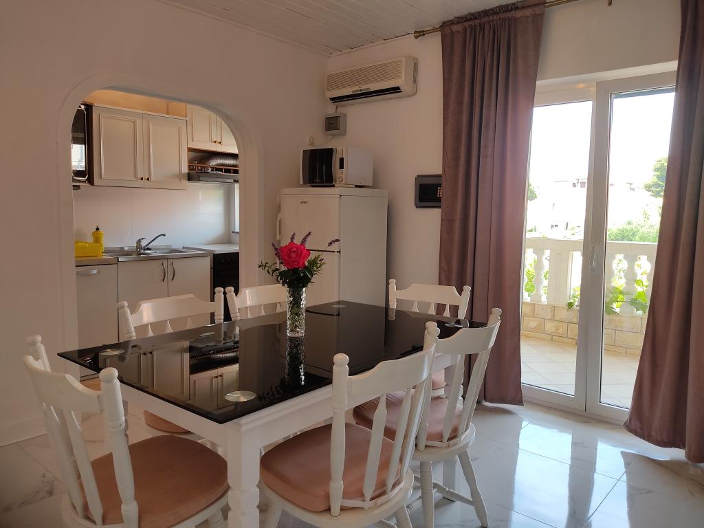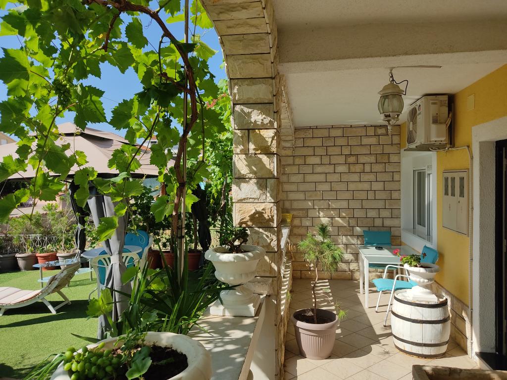 Naši apartmaji se nahajajo v mirni ulici, le 2-3 minut hoje do prodnete plaže, in pet minut hoje od središča mesta. Zahvaljujoč odlični lokaciji apartmaji so zelo primerni za družine z majhnimi otroki, ki si želijo preživeti svoj dopust v miru. Vsi naši apartmaji so čiste in udobne, z balkonom ali teraso, opremljeni s klimatsko napravo, internetnim priključkom in satelitsko televizijo. Razpolagamo s prelepo z vinsko trto pokrito teraso s sedežno garnituro in zunanjim žarom ki je na voljo vsem gostom. Apartmaji imajo urejeno lastno parkirišče na dvorišču objekta. Cena najema apartmaja je odvisna od obdobja in dolžino najema. Nudimo tudi popuste za daljše bivanje izven sezone.