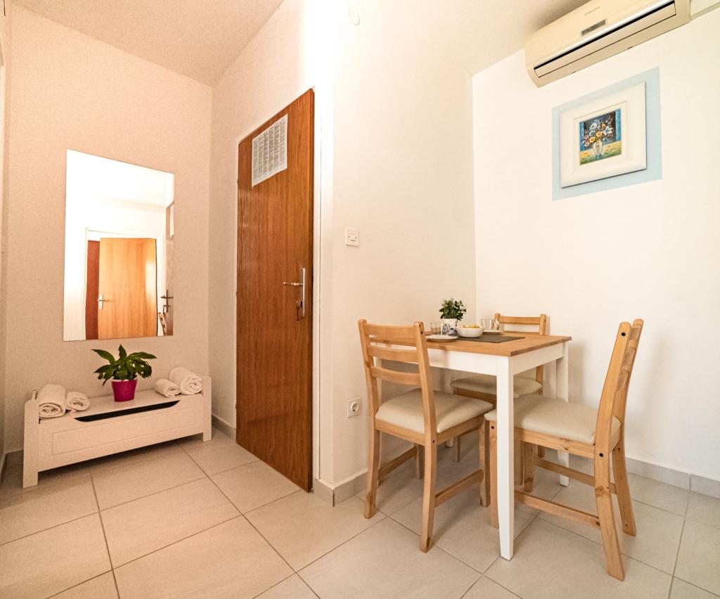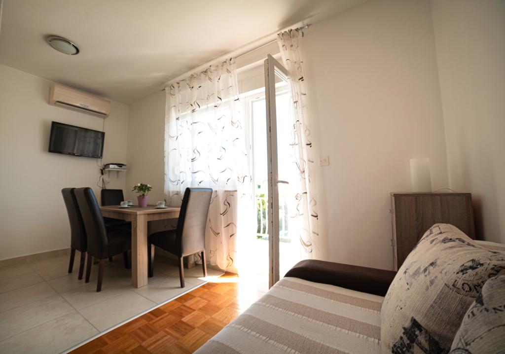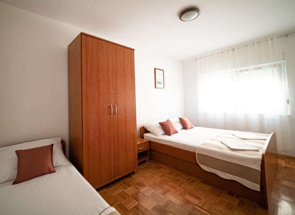 Namestitvene enoteNačin plačila: Akontacija znaša 30% celotne dogovorjene cene bivanja, plačilo pa na žiro račun najemnika apartmaja. Preostalih 70% dogovorjene cene plačamo v gotovini po prihodu v apartma. Potrditev akontacije (voucher) je prispela po 12. uri gostov je do 10. ure. Navedene cene na prvi strani oglasa so info povprečja za 6/7/8/9 mesecev. Apartmaji A2+1 so od 65€ do 80€, A3+1 pa od 80€ do 100€, vse odvisno od termina bivanja, števila gostov/apartmaja, števila dni bivanja, dogovorjenih pogojev rezervacije in plačila. . V ceno je vključeno 1 parkirno mesto za avtomobile do največ 5 m dolžine.