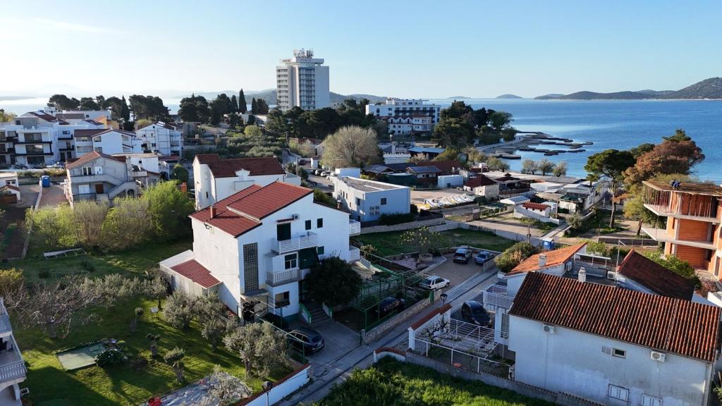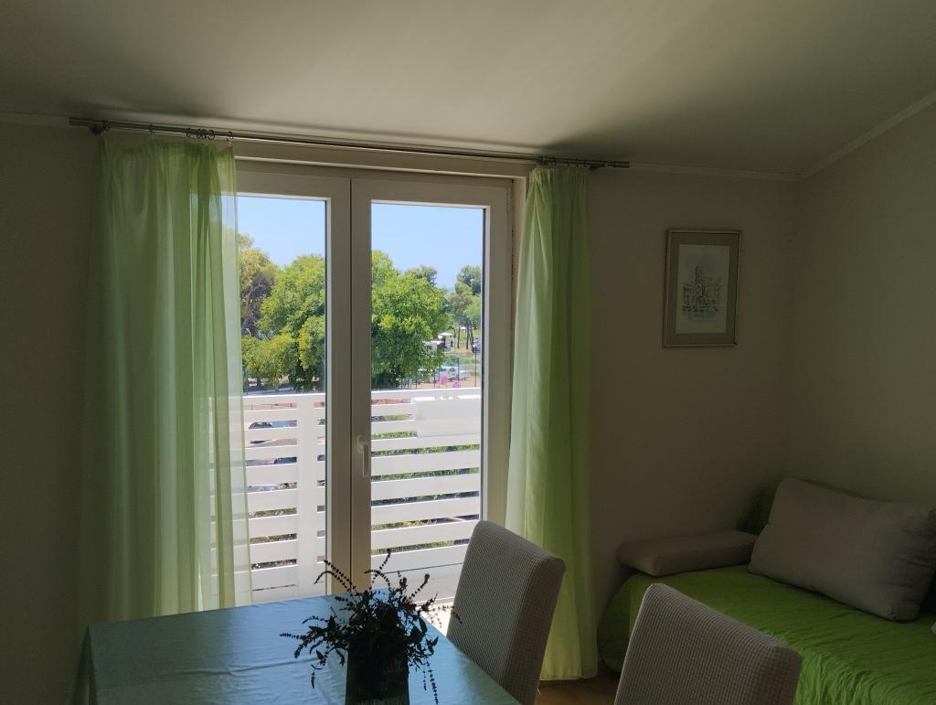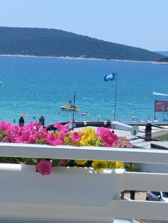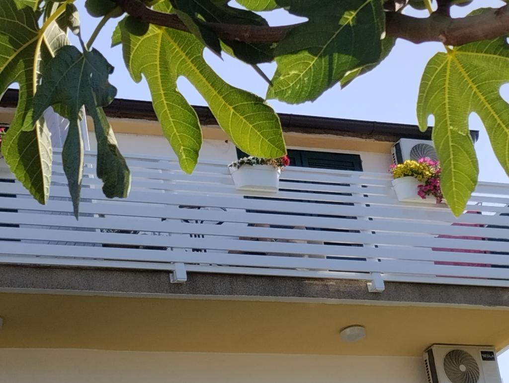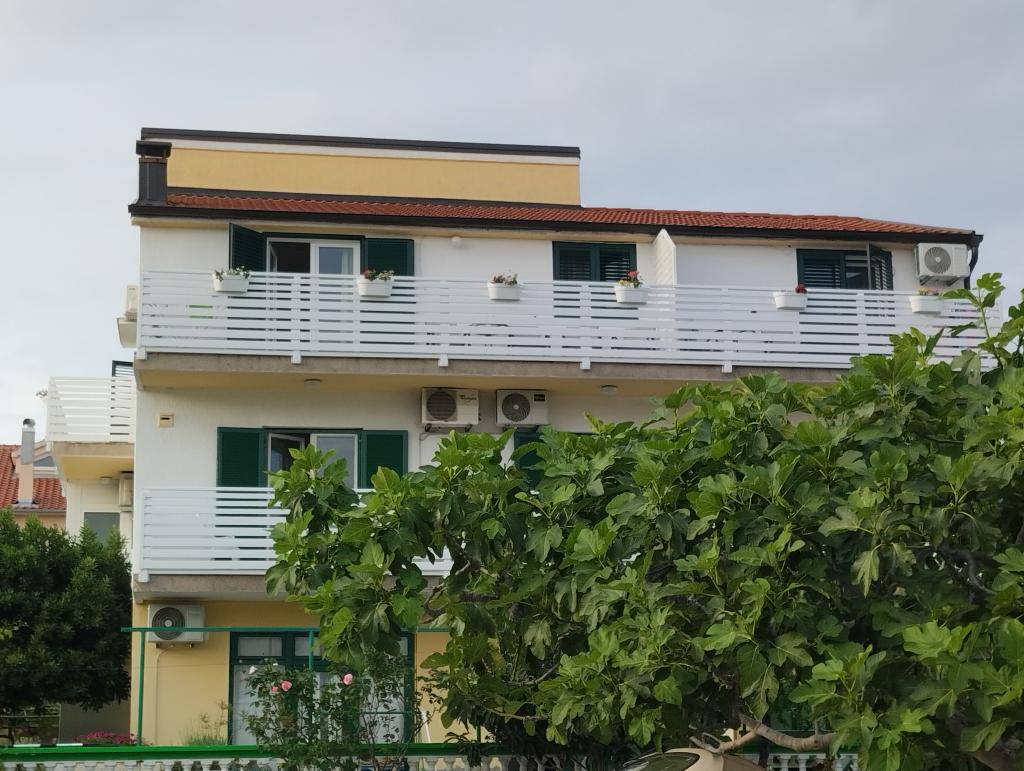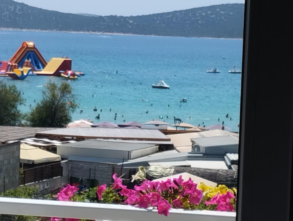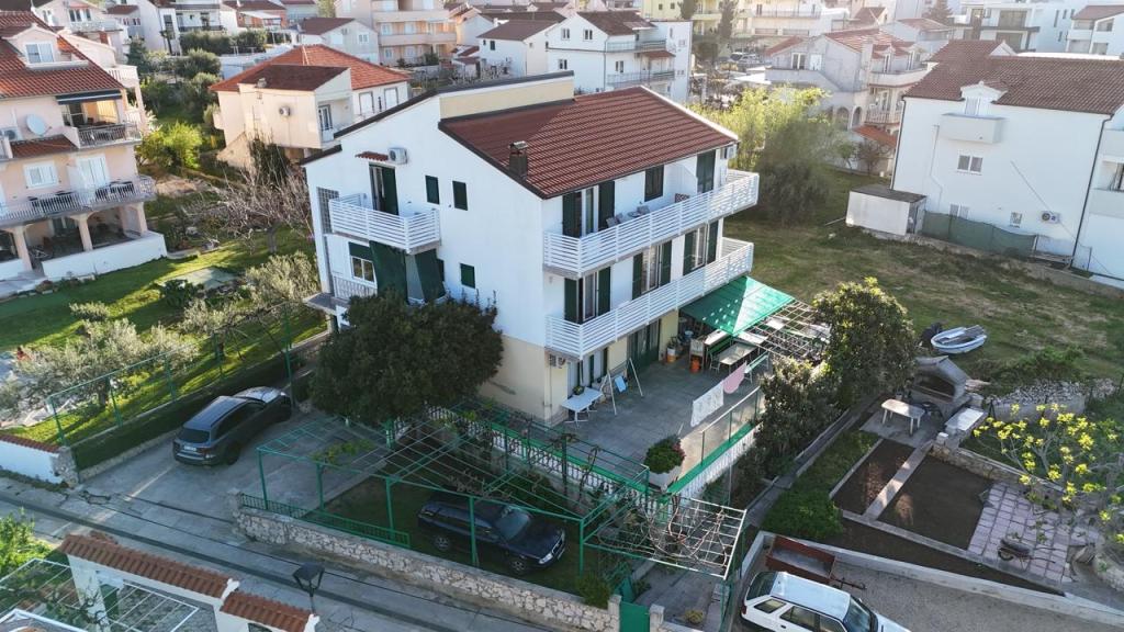 Dva apartmaja v drugem nadstropju družinske hiše na Modri plaži sta bila pred kratkim prenovljena, enosobno stanovanje pa je bilo urejeno lani. Plaža je od hiše oddaljena približno 70 m, center mesta pa 600 m. Na plaži so številni gostinski objekti in vsebine za otroke ter posebej urejena plaža za otroke. Plaža pred hišo je peščena, malo naprej, približno 20 metrov, pa je prodnata. Vstop v stanovanje. možen po 12h odhod do 10h.