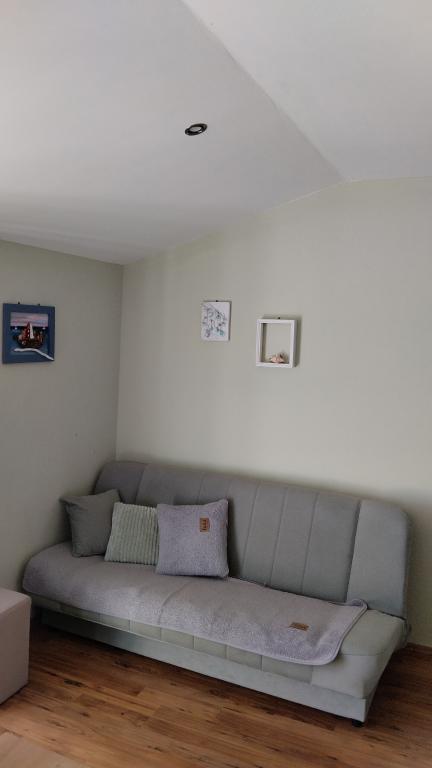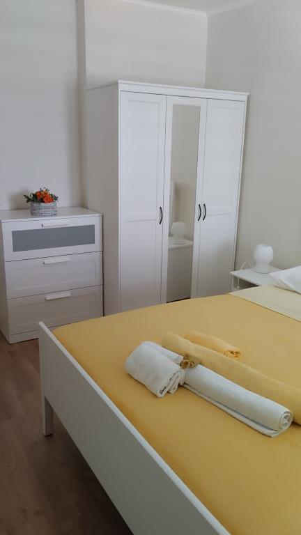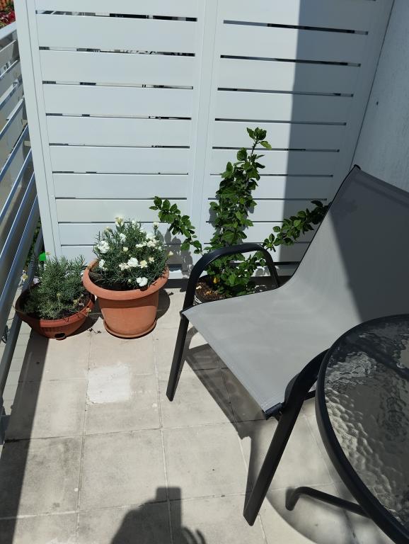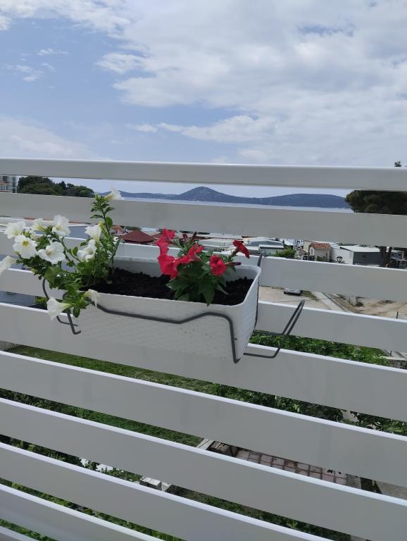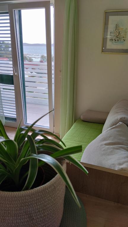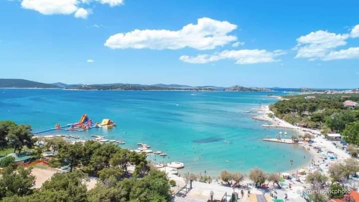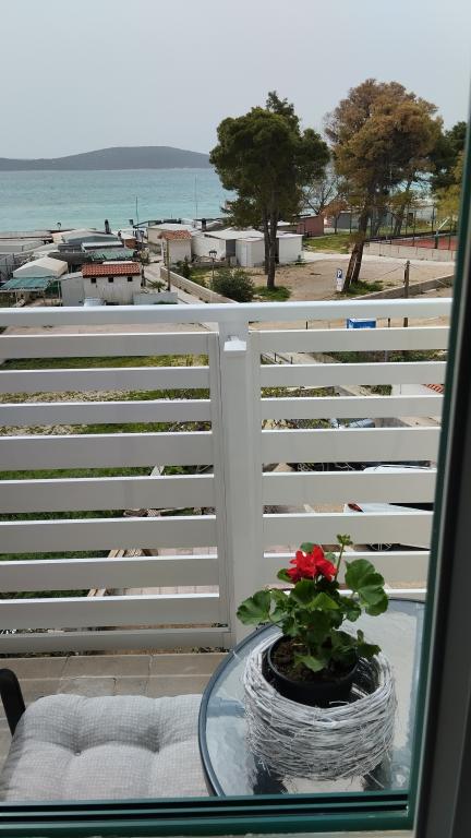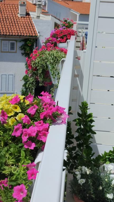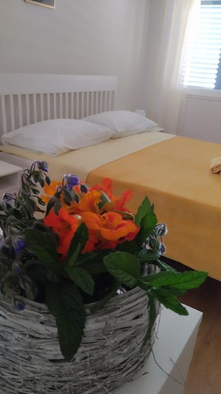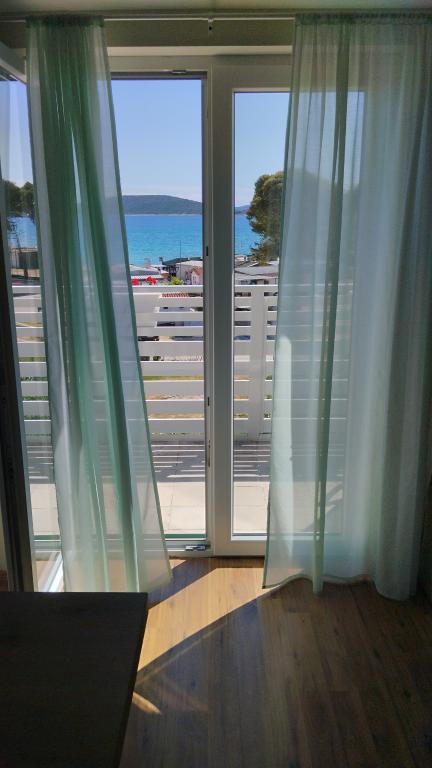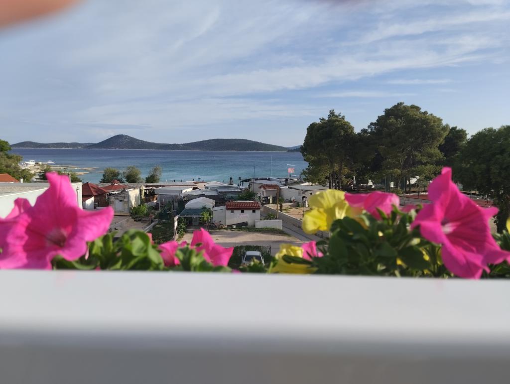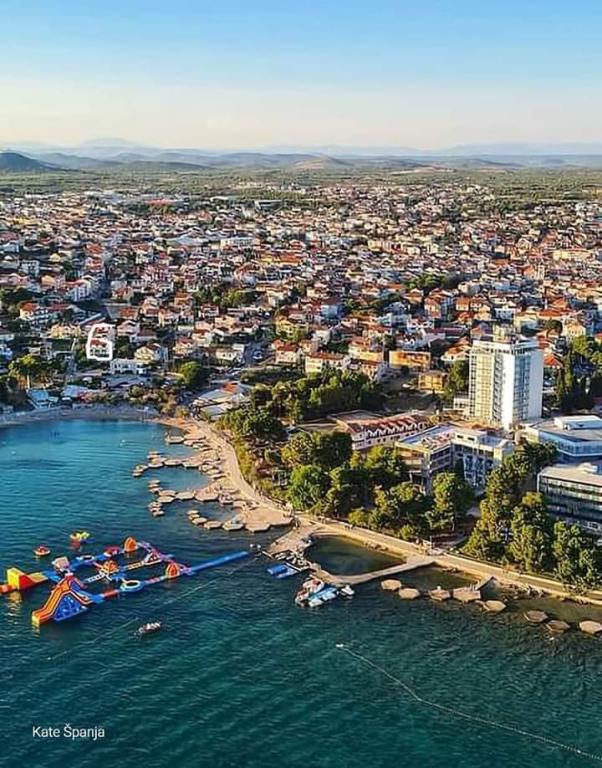 Dva apartmaja v drugem nadstropju družinske hiše na Modri plaži sta bila pred kratkim prenovljena, enosobno stanovanje pa je bilo urejeno lani. Plaža je od hiše oddaljena približno 70 m, center mesta pa 600 m. Na plaži so številni gostinski objekti in vsebine za otroke ter posebej urejena plaža za otroke. Plaža pred hišo je peščena, malo naprej, približno 20 metrov, pa je prodnata. Vstop v stanovanje. možen po 12h odhod do 10h.