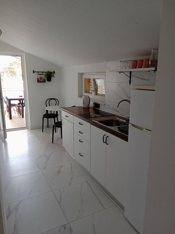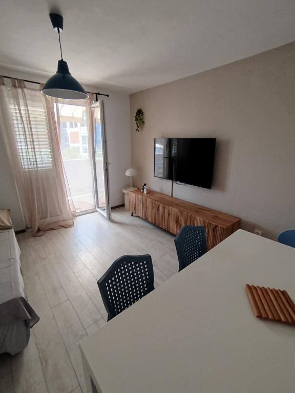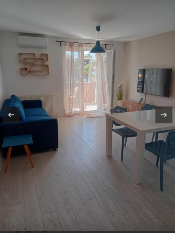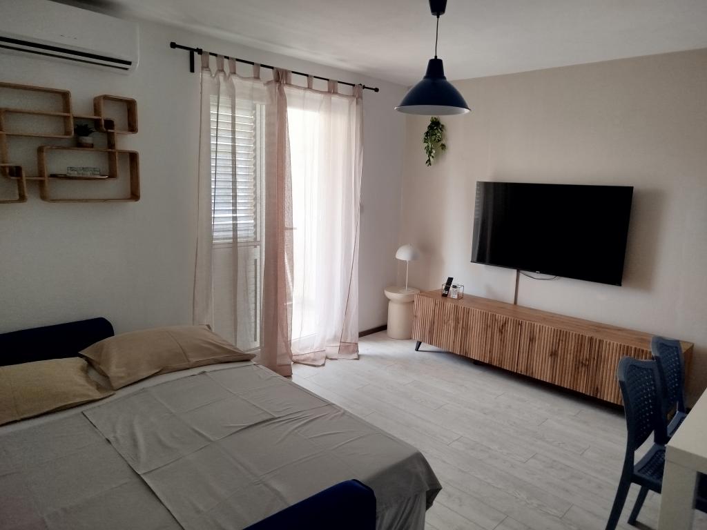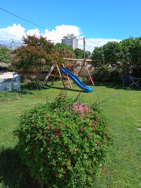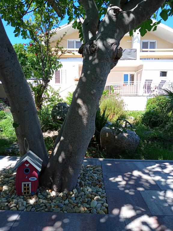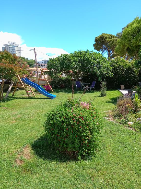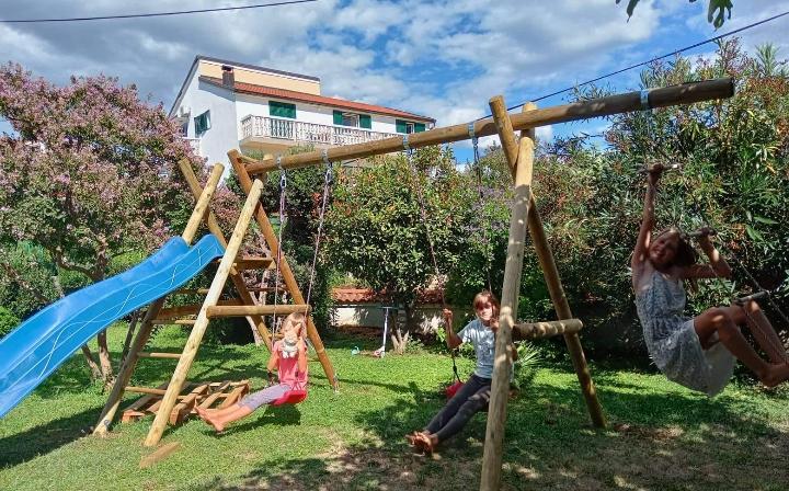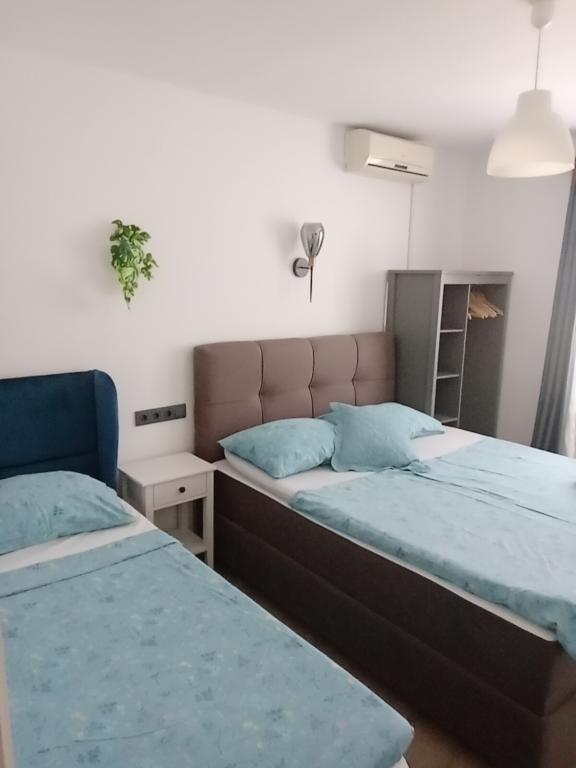 Apartmaji Blue Beach, ki se nahaja v mirnem delu mesta, na plaži, Riva. Center in drugih objektov je le 5 minut hoje. Vsi apartmaji imajo pogled na morje, borovim gozdom in lepim vrtom. Apartmaji so lepo opremljeni z vso potrebno opremo. Možnost uporabe, vrt, žar in otroško igrišče. parkirišče v dvorišču.