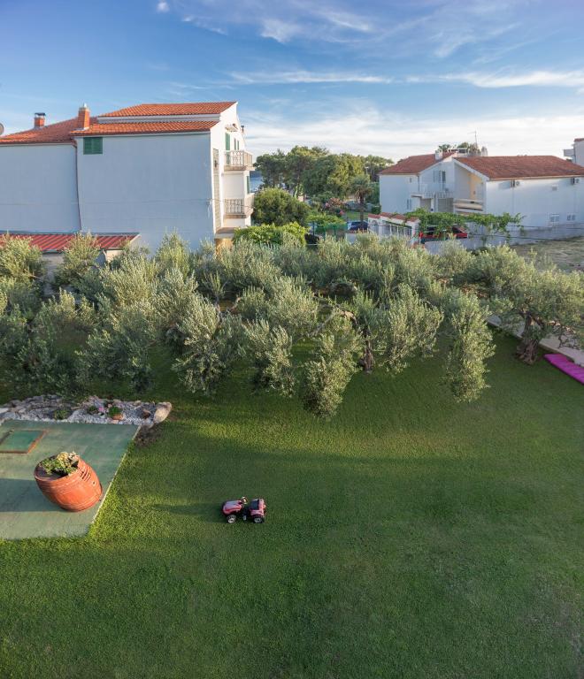 Apartmaji Salvia se nahajajo v Vodicah, ležijo 30 metrov od prodnate družinske plaže, do katere vodi urejena pot brez prometa. Lepa promenada ob morju je oddaljena le minuto hoje, njen položaj pa vam ponuja možnost popolnega oddiha. Prva trgovina je oddaljena 2 minute hoje, središče mesta in drugi mestni objekti pa so oddaljeni manj kot 5 minut hoje. Apartmaji Salvia se nahajajo v mirnem delu Vodic, zato je namestitev idealna za družine z otroki. Vsem našim gostom je na voljo parkirišče in čudovit vrt, napolnjen z zelenjem, cvetjem, jutranjimi pticami in vetričem v vročih poletnih večerih. Želimo vam zagotoviti najboljše možne počitnice, zato smo kot vaši gostitelji na voljo za vsa vaša vprašanja.