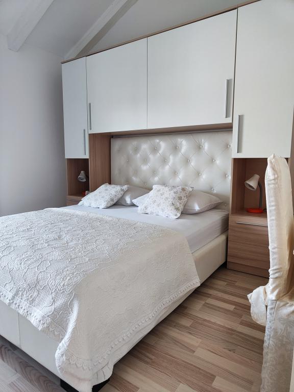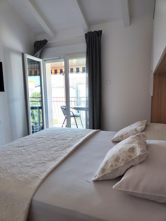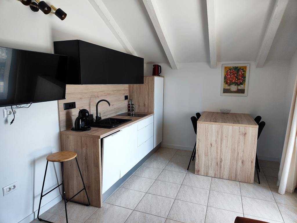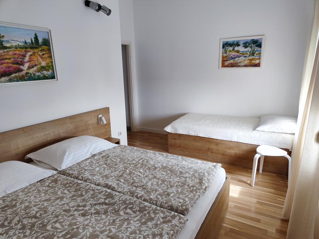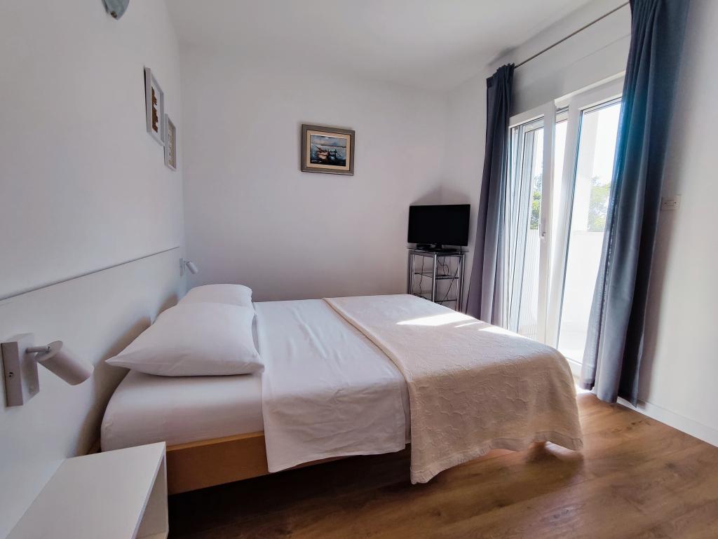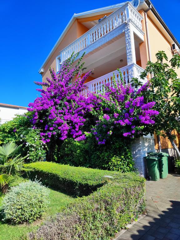 Dragi gostje, vabimo vas, da preživite svoj dopust v mirnem okolju lepo urejenega vrta in apartmajev. Daleč od hrupa, vendar zelo blizu plaže in centra mesta. Avto preprosto parkirate in ga ne uporabljate, dokler se ne vrnete domov. Naj se dan začne s pitjem kave na terasi apartmaja s fantastičnim pogledom na morje, otoke in Modro plažo. Nato se le z brisačo v roki spusti na plažo. Zvečer pa kaj lepšega kot poletna večerja z družino ali prijatelji, ki si jo lahko pripravite v žar hiški na vrtu. Veselimo se vašega prihoda!