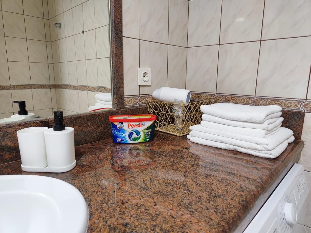 V kuhinji so začimbe, olje, kis in detergent. S kavnim aparatom dobite tudi kapsule. Z napravami so na voljo tablete in kapsule za pralne in pomivalne stroje. Likalna deska in likalnik se nahajata v skupnem prostoru in sta na voljo vsem. Na voljo smo vam za vsa povpraševanja in predloge, pa naj gre za izlete, najem čolnov, koles itd.