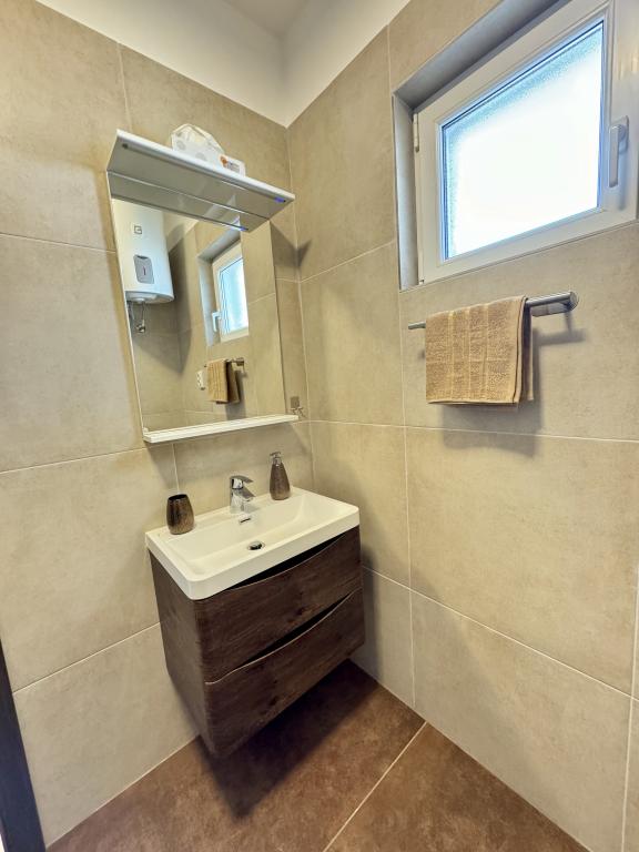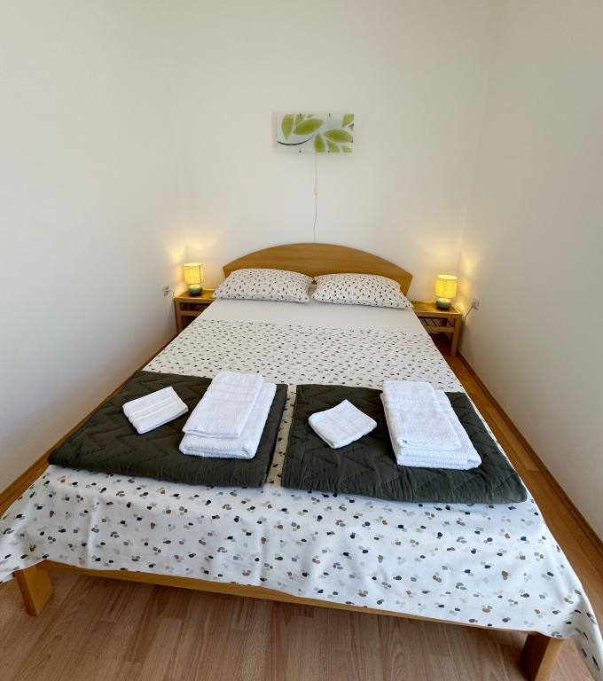 Sprostite se v tej udobni in lepo opremljeni namestitvi. Apartmaja Sunce ID: 78911 in Mjesec ID: 81423 se nahajata v prvem nadstropju in imata oba 42 m2. Sestavljena sta iz spalnice, dnevne sobe z jedilnico, kuhinje, kopalnice in terase. Apartma ima klimatsko napravo za tople dni in talno ogrevanje (Sunce) za hladne dni. Wifi in klimatska naprava sta vključena v ceno. Gostom je na voljo posteljnina in brisače. Parkiranje je brezplačno in se nahaja znotraj stavbe. Apartmaja se nahajata v mirnem delu mesta Vodice. Najbližja plaža je oddaljena 750 m. Center mesta je oddaljen 990 m. Nahajamo se v bližini "Medical centra Vodice", novo odprtega športnega centra "Račice" in največjega skate parka na Hrvaškem.