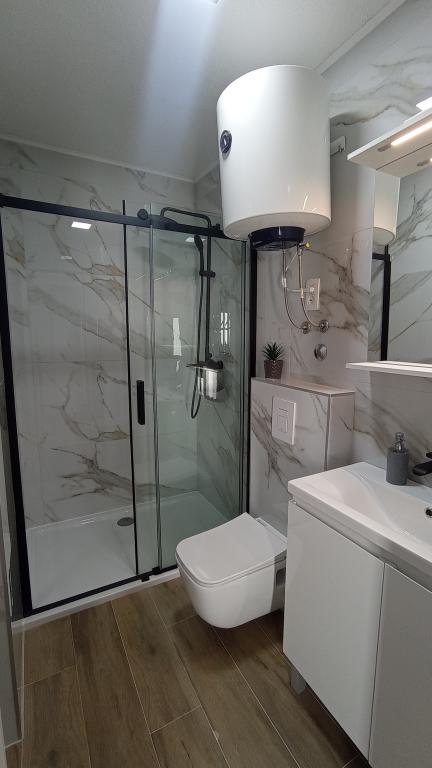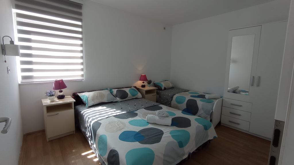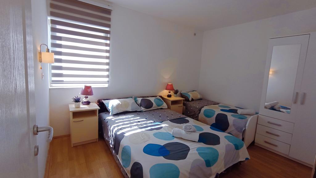 Vse pohvale gospodu Tihomirju, zelo prijazen. Apartma je bil odličen, blizu plaže in centra. Ko smo prispeli, sta nas v hladilniku čakala hladen sok in voda, otroci so dobili sladoled.