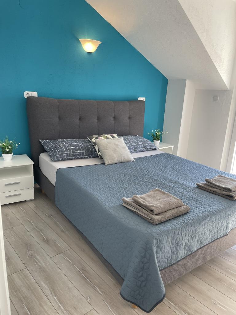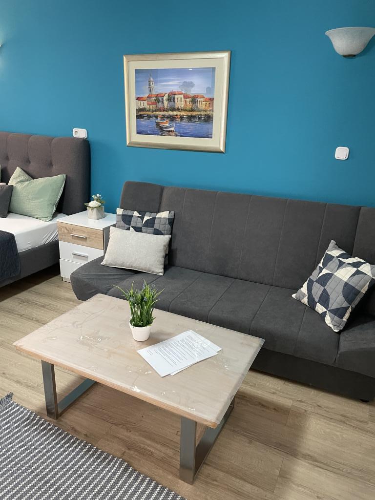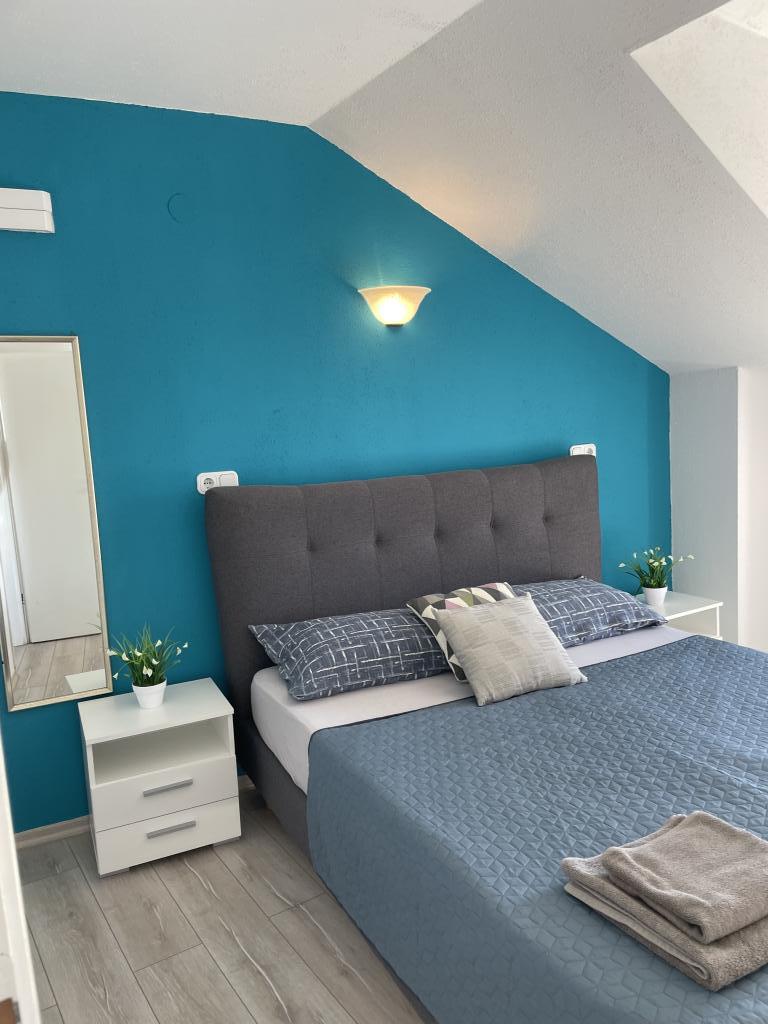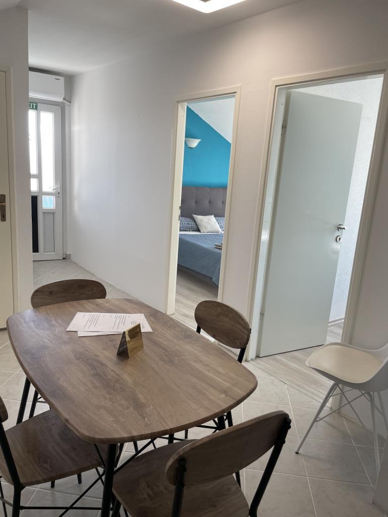 Popolnoma in moderno opremljeni apartmaji v središču Vodic, oddaljeni približno 150 metrov od morja. Objekt se nahaja 1 minuto hoje do centra in 5 minut hoje do plaže ... Ponujamo apartma s pogledom na morje za 4+1 osebo z dvema zakonskima posteljama v 2 sobah z dodatnim ležiščem za 5. osebo in balkonom s čudovitim razgledom na morje. 2 apartmaja za 2+1 osebo z zakonsko posteljo in dodatnim ležiščem, eden od teh dveh apartmajev pa ima balkon. Posebna ponudba za 6 in 9 mesecev: plačajte 5 nočitev in dobite eno nočitev brezplačno!! Poleg tega imate brezplačno parkiranje. Dobrodošli v čudovitih Vodicah