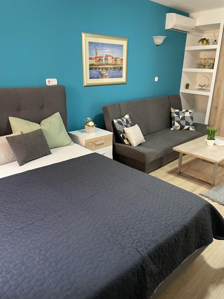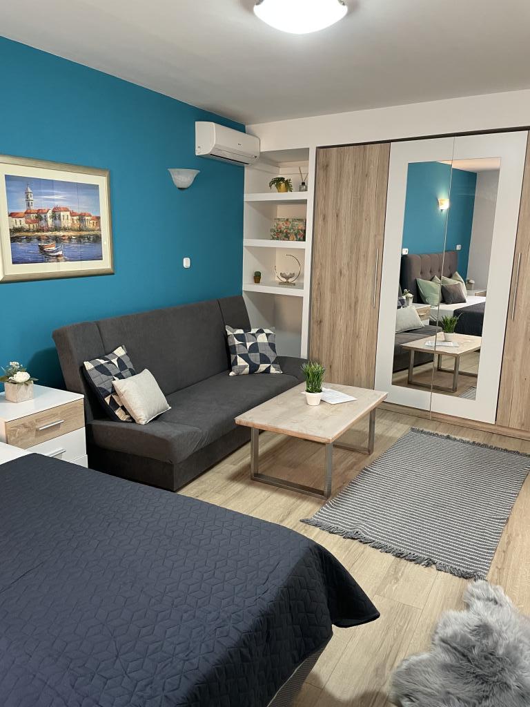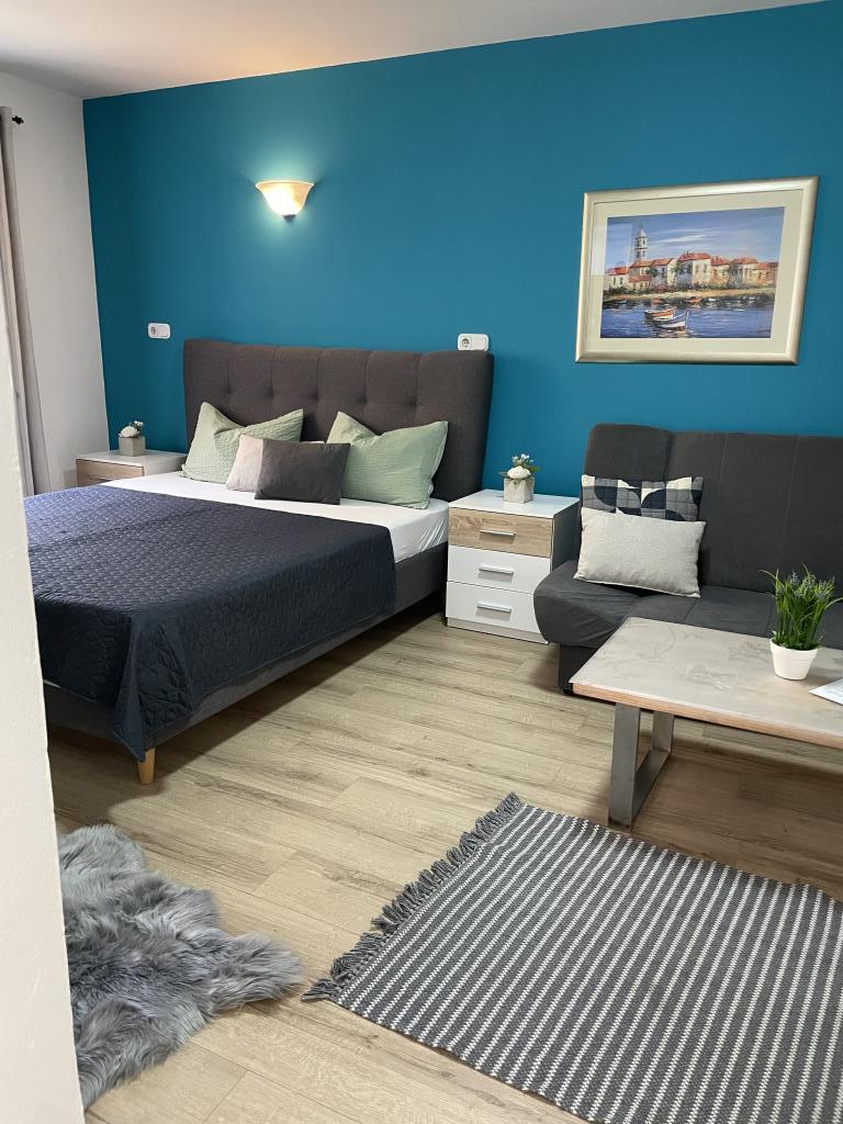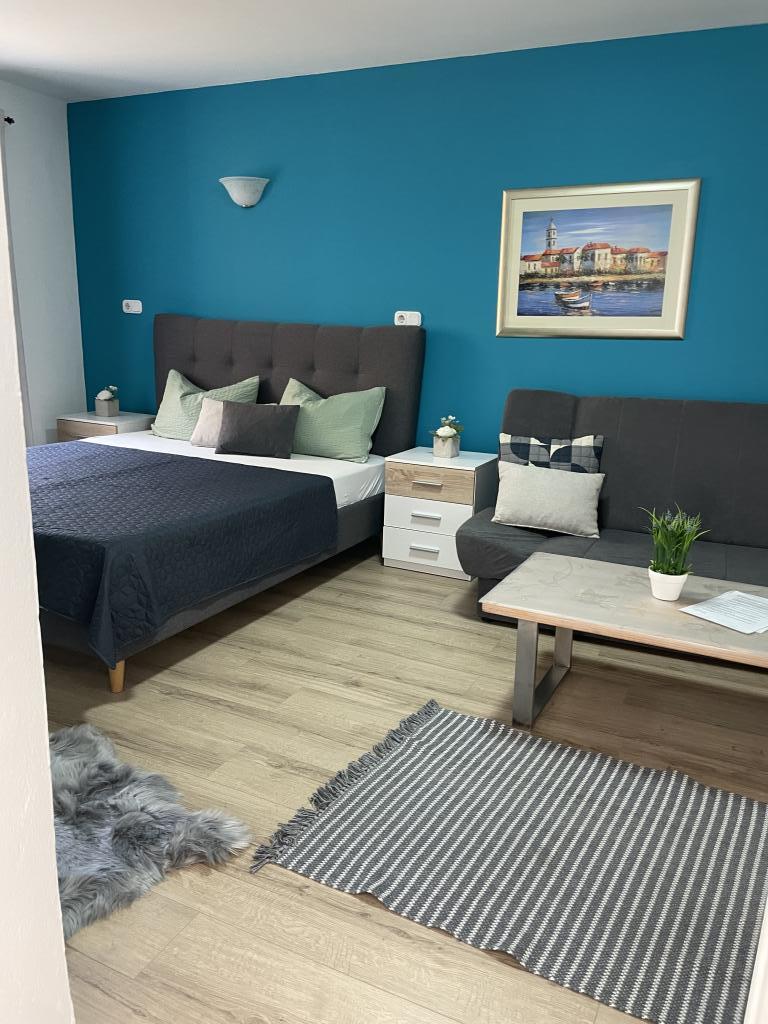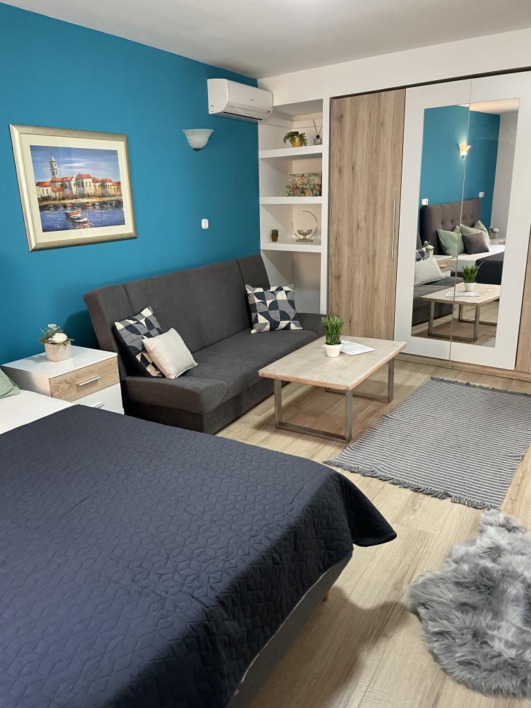 Popolnoma in moderno opremljeni apartmaji v središču Vodic, oddaljeni približno 150 metrov od morja. Objekt se nahaja 1 minuto hoje do centra in 5 minut hoje do plaže ... Ponujamo apartma s pogledom na morje za 4+1 osebo z dvema zakonskima posteljama v 2 sobah z dodatnim ležiščem za 5. osebo in balkonom s čudovitim razgledom na morje. 2 apartmaja za 2+1 osebo z zakonsko posteljo in dodatnim ležiščem, eden od teh dveh apartmajev pa ima balkon. Posebna ponudba za 6 in 9 mesecev: plačajte 5 nočitev in dobite eno nočitev brezplačno!! Poleg tega imate brezplačno parkiranje. Dobrodošli v čudovitih Vodicah