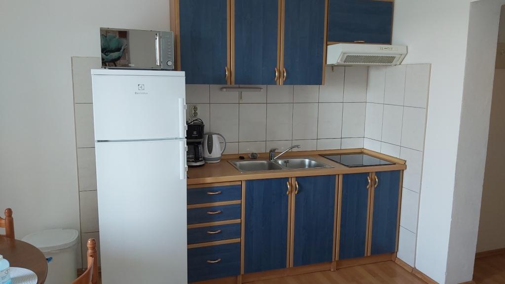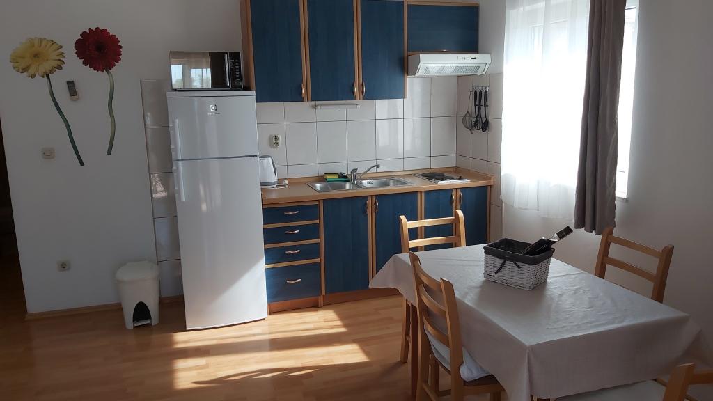 Popolnoma in lepo opremljeni apartmaji se nahajajo v mirnem predelu Vodic v družinski hiši 50 m od plaže, prva vrsta do morja. V prvem nadstropju sta dva apartmaja. Površina vsakega apartmaja je približno 45 m2, sestavljeni so iz ene spalnice, kopalnice, kuhinje z jedilnico in terase s pogledom na morje. Kapaciteta največ 4 osebe na apartma. Apartmaji so opremljeni s klimatsko napravo, TV/SAT, internetom (Wi-Fi), mikrovalovno pečico, možnost uporabe otroške posteljice, likalnika, žara in parkirišča. Objekt se nahaja minuto hoje od plaže, 10 minut hoje od centra. Rezervirajte namestitev pravočasno in preživite prijeten dopust v našem domu.