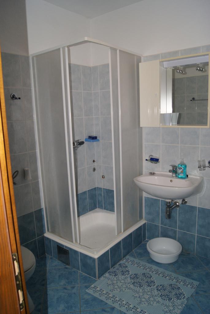 Opis apartmaja A4 (55 m2, prvo nadstropje): - spalnica - zakonska postelja (180x200cm, 2 osebi), - spalnica - zakonska postelja (160x200cm, 2 osebi) - dnevna soba - kavč - vključena posteljnina in brisače - možnost: klimatska naprava (v dnevni sobi z doplačilom) - TV SAT - kuhinja (dobro opremljena): jedi za pripravo in serviranje hrane in pijače hladilnik in zamrzovalnik (kombinirana enota) električni štedilnik s pečico pomivalni stroj - kopalnica (kad) s straniščem - dodatni WC - ložo z vrtno garnituro in balkon (pred dnevnim prostorom).
