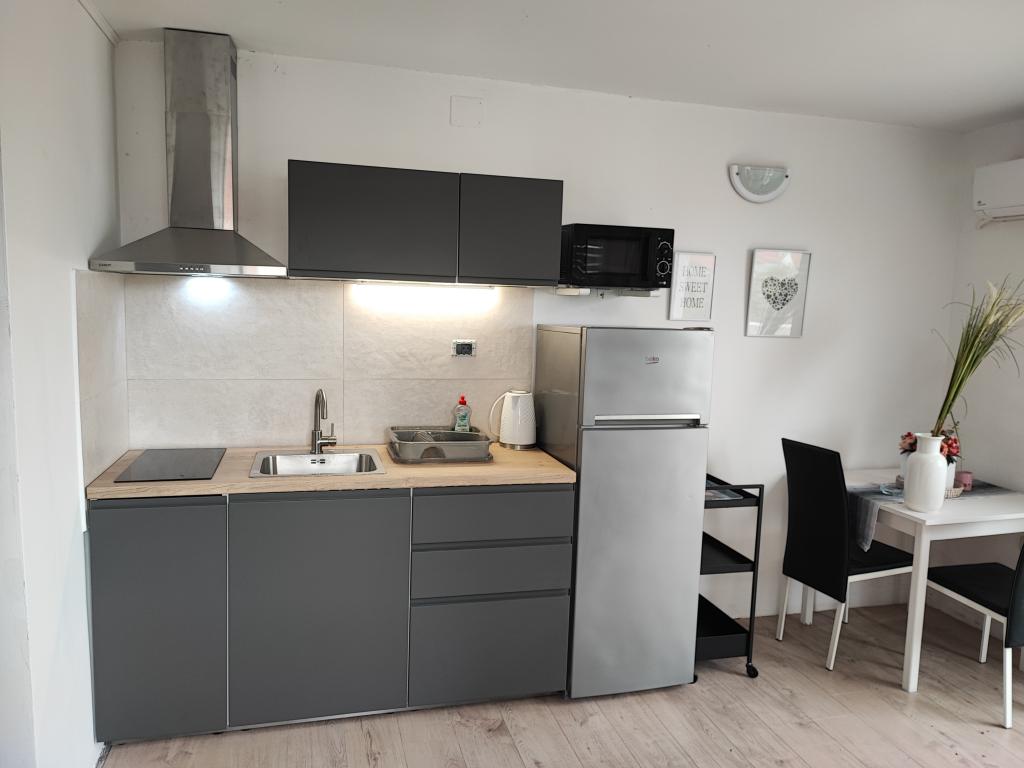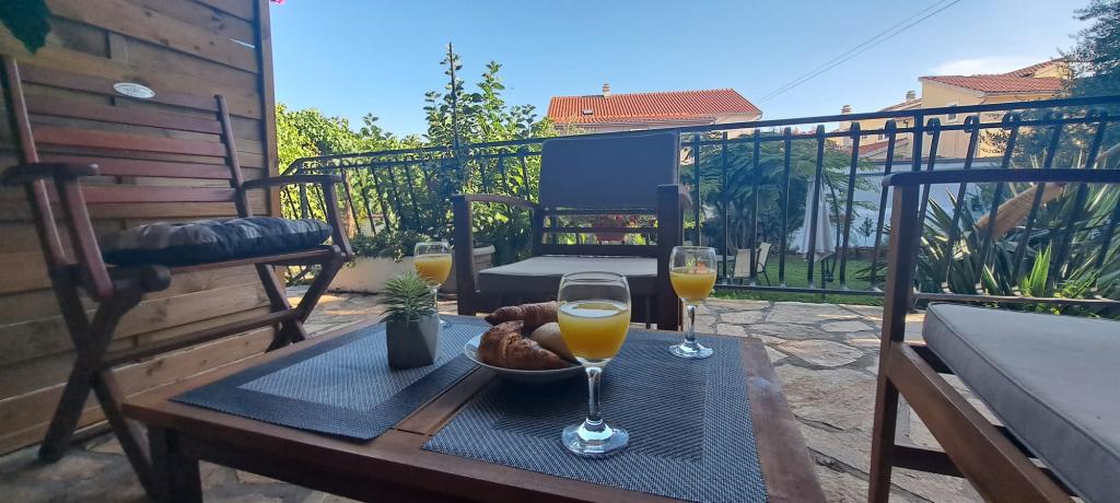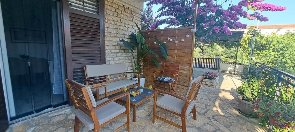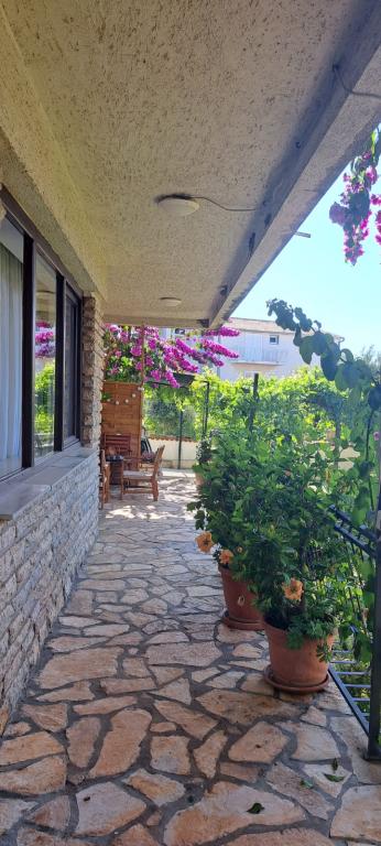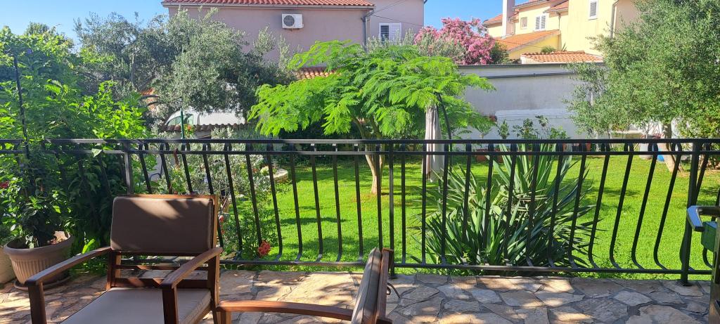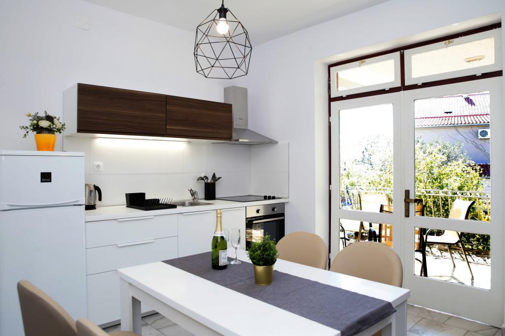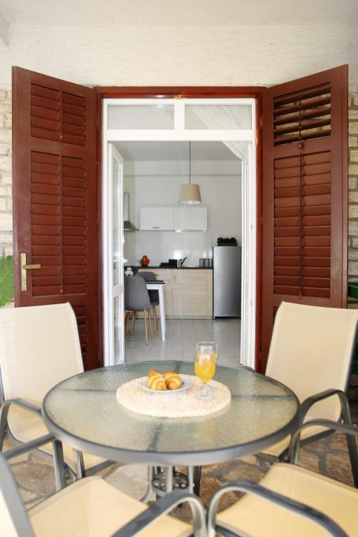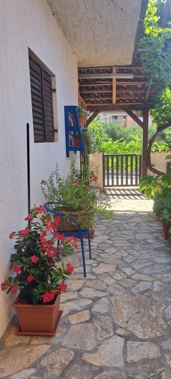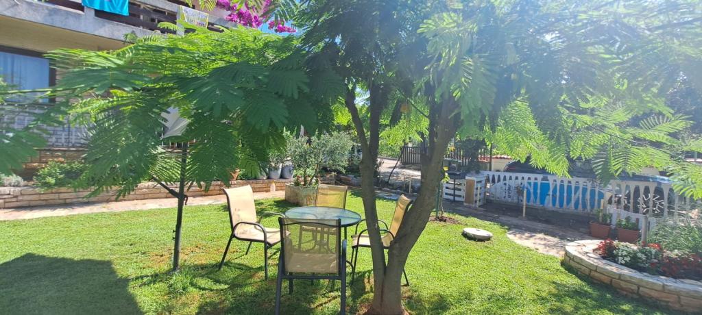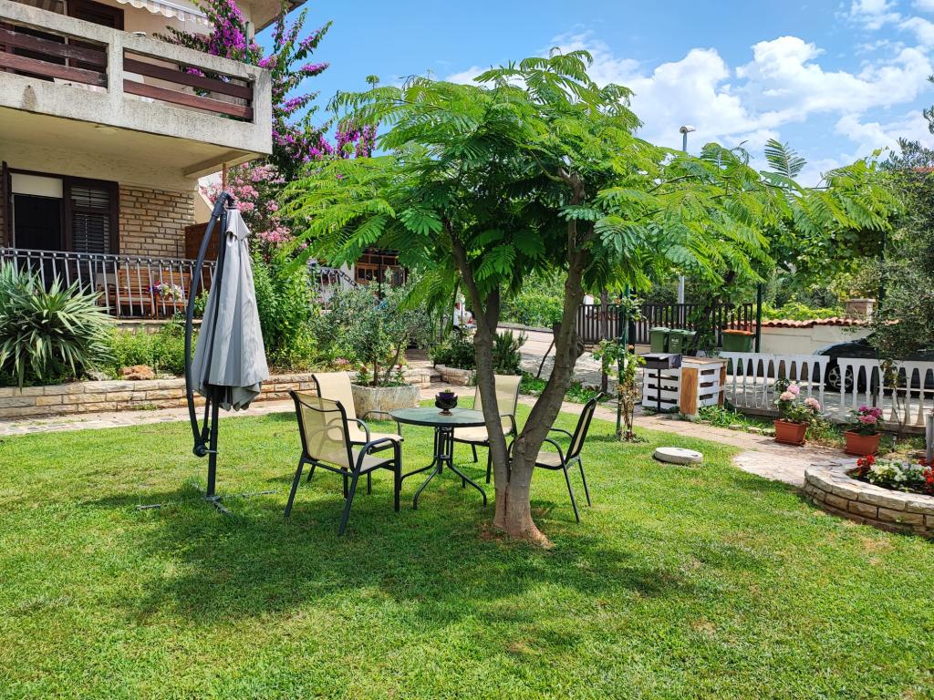 Tri popolnoma opremljeni apartmaji se nahajajo v družinski hiši na zelo mirni lokaciji z velikim vrtom in ladjedelnice, parkirišče in žar. Vsi apartmaji so opremljeni s klimatsko napravo. Sodobno opremljena (klima, internet, DVD, SAT TV). Na plaži so v 3 min hoje in centra 10 min. Veselimo se srečanja z vami.